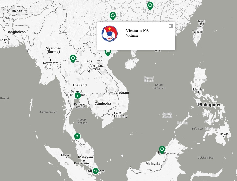 | Trên bản đồ các khách hàng của InStat, Liên đoàn bóng đá Việt Nam là khách hàng đầu tiên tại Việt Nam. Tuy nhiên, Thái Lan đã có 7 CLB sử dụng InStat, Singapore con số này lên tới 10 CLB. |