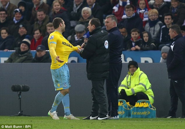 Không giữ được bình tĩnh khi đội nhà bị dẫn trước, HLV Nigel Pearson của Leicester City bóp cổ cầu thủ James McArthur bên phía Crystal Palace trước sự sững sờ của các fan.