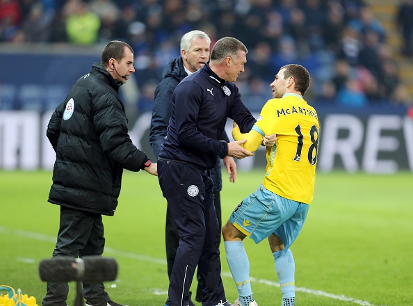 Có lẽ tức giận vì đội nhà bị dẫn 0-1, HLV Pearson bóp cổ McArthur. Lúc đầu mọi người tưởng vị thuyền trưởng của Leicester City đùa vì ông vẫn nở nụ cười khi bóp cổ McArthur và pha va chạm trước đó cũng không phải là hành động cố ý của cầu thủ đội khách.