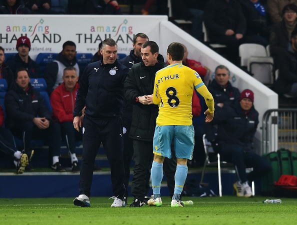 Trong trận đấu giữa Leicester City và Crystal Palace ở vòng 24 Ngoại hạng Anh diễn ra cuối tuần qua, cầu thủ James McArthur của đội khách làm ngã HLV Nigel Pearson của đội chủ nhà sau một tình huống tranh bóng quyết liệt.