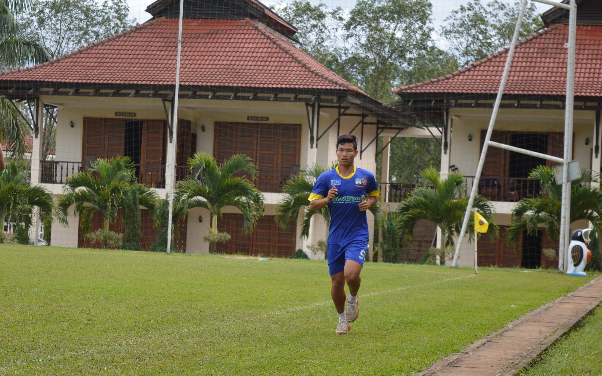 | Đông Triều chạy nhẹ quanh khuôn viên Trung tâm Hàm Rồng để hồi phục chấn thương. Ảnh: My Kiều |