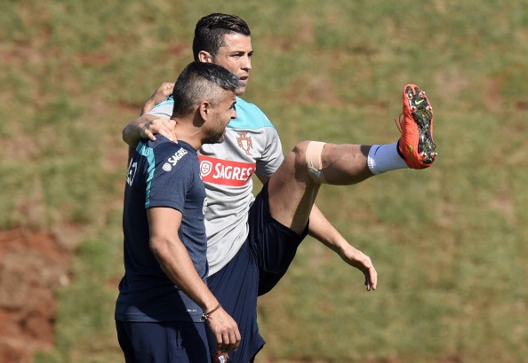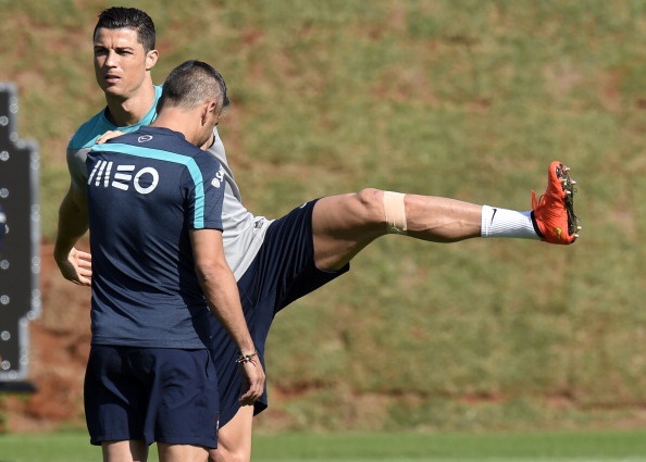Trong buổi tập chiều qua của đội tuyển Bồ Đào Nha, HLV thể lực của Seleccao hoảng sợ khi chứng kiến Ronaldo khuỵu xuống trong lúc thực hiện bài tập chạy.