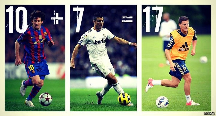 | Hazard đủ khả năng đạt đến đẳng cấp của Messi và Ronaldo. Ảnh: Twitter. |