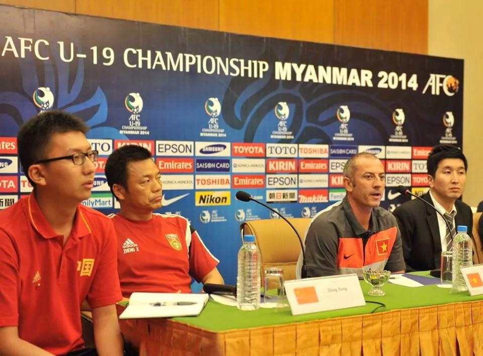 10h30 sáng nay (8/10), buổi họp báo các đội bóng bảng C trước lượt trận đầu tiên tại VCK U19 châu Á diễn ra với sự góp mặt của 4 HLV trưởng U19 Trung Quốc, Hàn Quốc, Việt Nam và Nhật Bản.