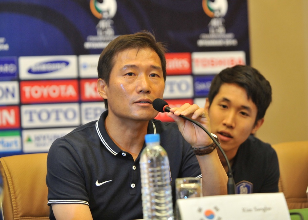 "Đây là bảng đấu khó khăn, với tư cách là đương kim vô địch (ĐKVĐ) chúng tôi sẽ nỗ lực để bảo vệ thành công danh hiệu của mình. Chúng tôi đã gặp Trung Quốc năm ngoái, Nhật Bản cũng từng gặp, còn Việt Nam vẫn là một ẩn số, chúng tôi chỉ được theo dõi các bạn thi đấu trận chung kết U19 ĐNÁ gặp U19 Nhật Bản trên sân Mỹ Đình. Chúng tôi đánh giá rất cao tinh thần của U19 Việt Nam trong trận đấu ấy", ông Kim Sangho cho biết.