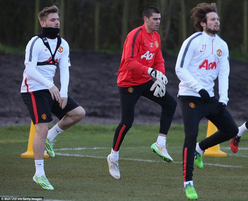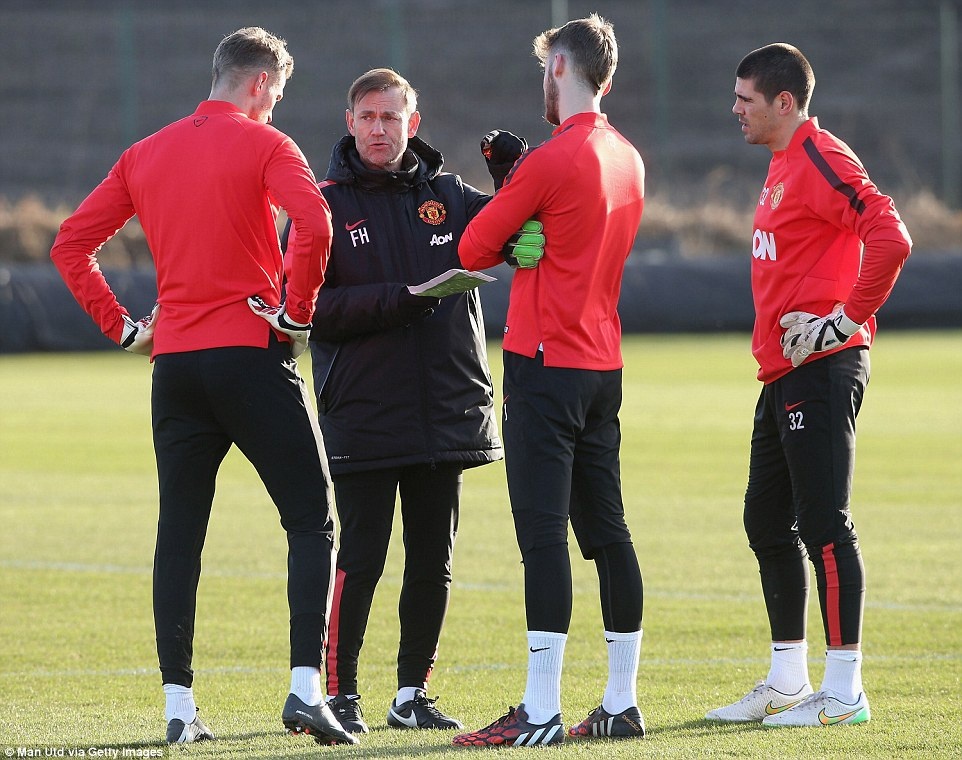 HLV thủ môn Frans Hoek đang trao đổi với 3 người gác đền là Victor Valdes, Anders Lindegaard và David de Gea. Sự có mặt của Valdes có thể là nguyên nhân khiến Lindegaard ra đi ngay trong kỳ chuyển nhượng mùa đông này.