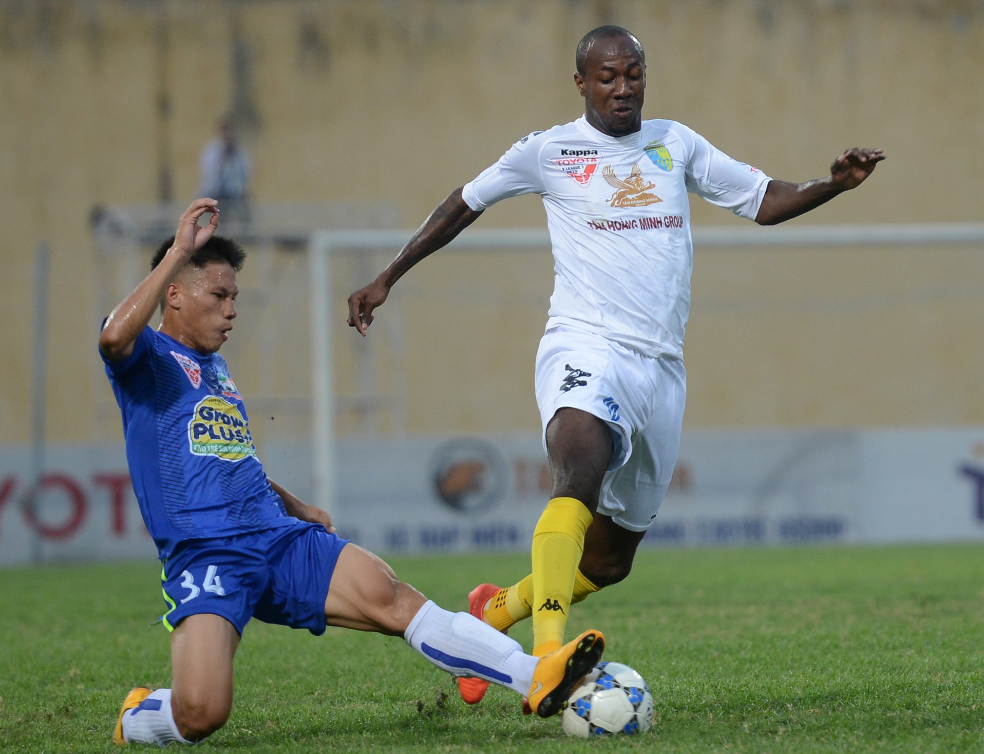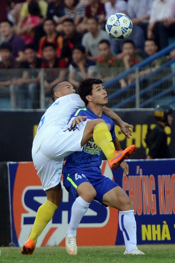 | Một trong những tình huống đó tạo cơ hội cho Samson đánh đầu mở tỷ số từ phút 23. Anh còn một lần lập công ở cuối hiệp 1 để nâng số bàn thắng tại V.League 2015 lên con số 7. |
