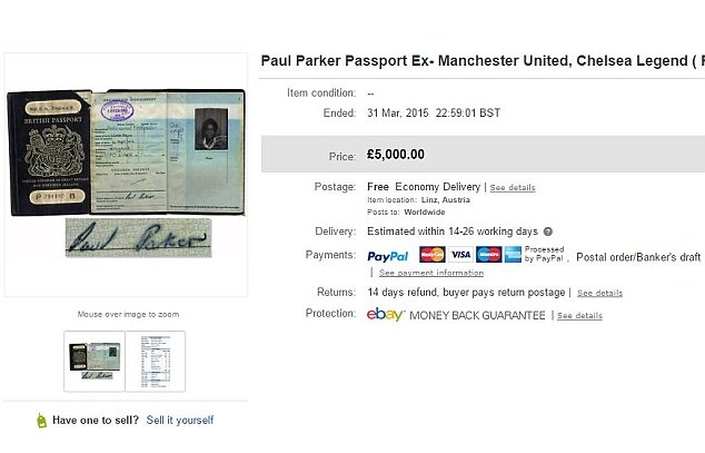 | Hộ chiếu hết hạn của Paul Parker được rao bán trên Ebay. Ảnh: Daily Mail. |