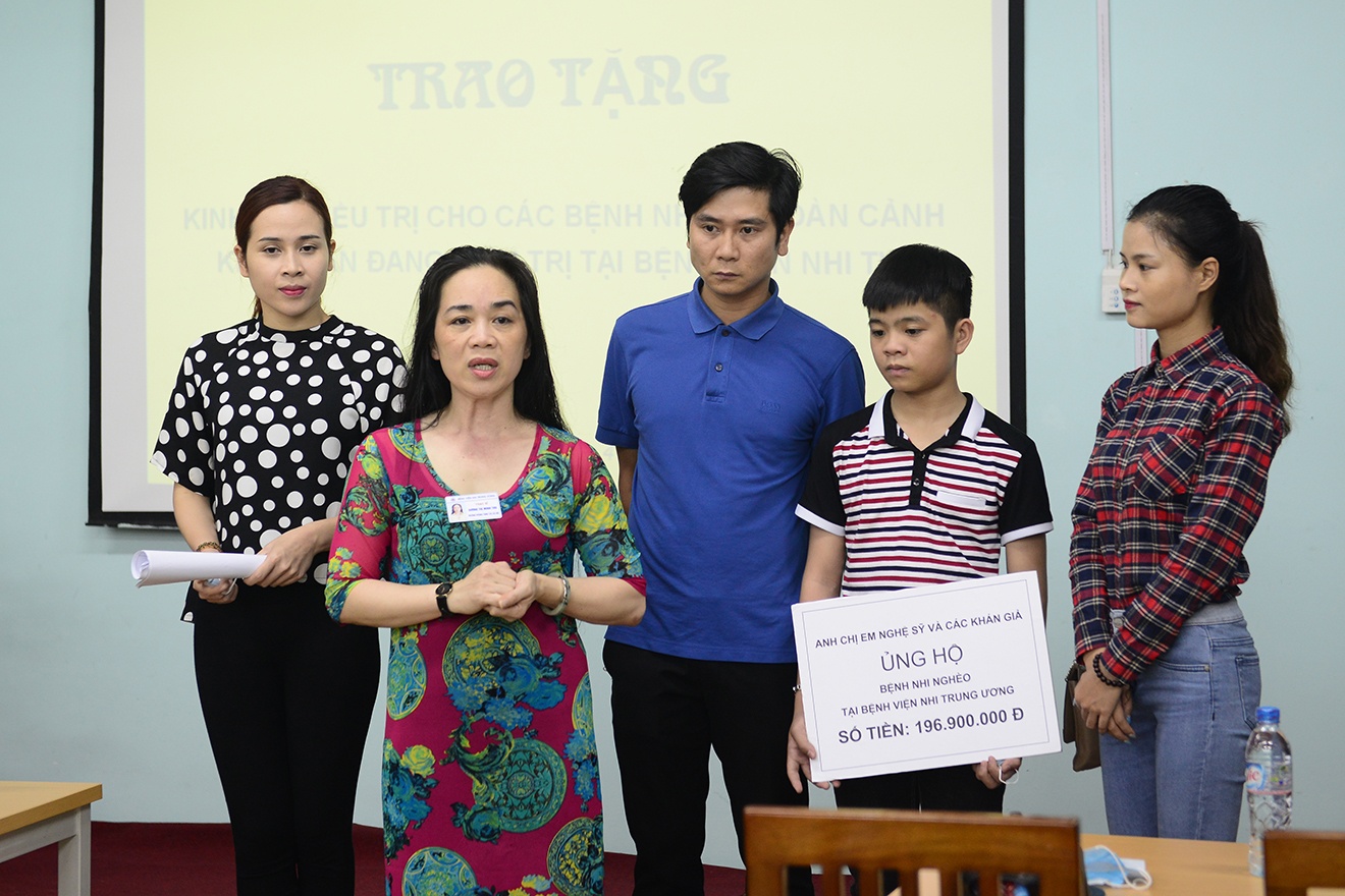 Ngồi cạnh vợ, Hồ Hoài Anh không giấu vẻ tự hào nói về bà xã: "Mấy ngày gần đây, tôi đọc báo thấy trẻ em nhiễm sởi nhiều quá. Trong đó có những trường hợp bệnh nhi gia cảnh khó khăn, không có tiền chạy chữa, tôi rất xót xa và nói với Giang xem thế nào để vợ chồng mình cùng đóng góp. Tôi rất bất ngờ khi thấy Giang lên Facebook chia sẻ để nhiều người cùng chung tay giúp đỡ trẻ nhỏ. Sau đó, tôi nhắn tin cho Giang: Anh rất xúc động trước việc làm này của em".