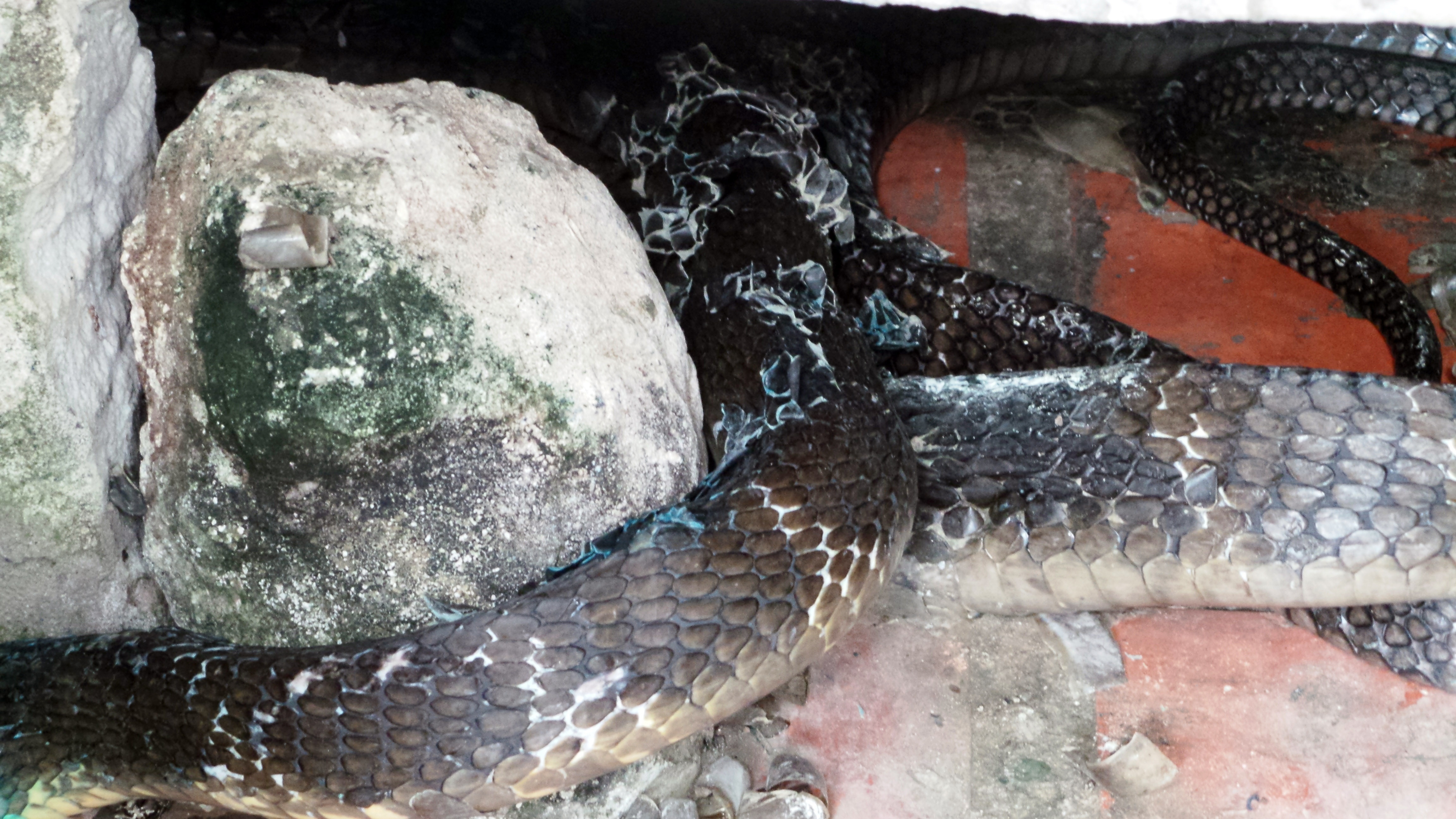 | Trại rắn Đồng Tâm (huyện Châu Thành, tỉnh Tiền Giang) đang nuôi dưỡng, bảo tồn hơn 100 cá thể rắn hổ mang chúa, trong đó có con nặng 6,3kg, dài 3,1 m được người dân bắt vào 9/10 tại nhà ông Lê Văn Bồng, xã Phú Đức (huyện Tam Nông, tỉnh Đồng Tháp). Con rắn này sau đó được giao cho cơ quan chức năng và đưa về trại rắn Đồng Tâm chăm sóc, chữa trị vết thương. |