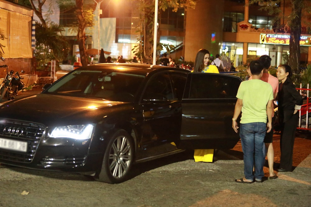 | Thời điểm cuối năm, Hồ Ngọc Hà khá bận rộn với những show diễn. Trong đêm nhạc tại TP.HCM mới đây, bà mẹ một con đi trên chiếc Audi quen thuộc đến điểm diễn. Một vài người thân cũng đi cùng cô. |