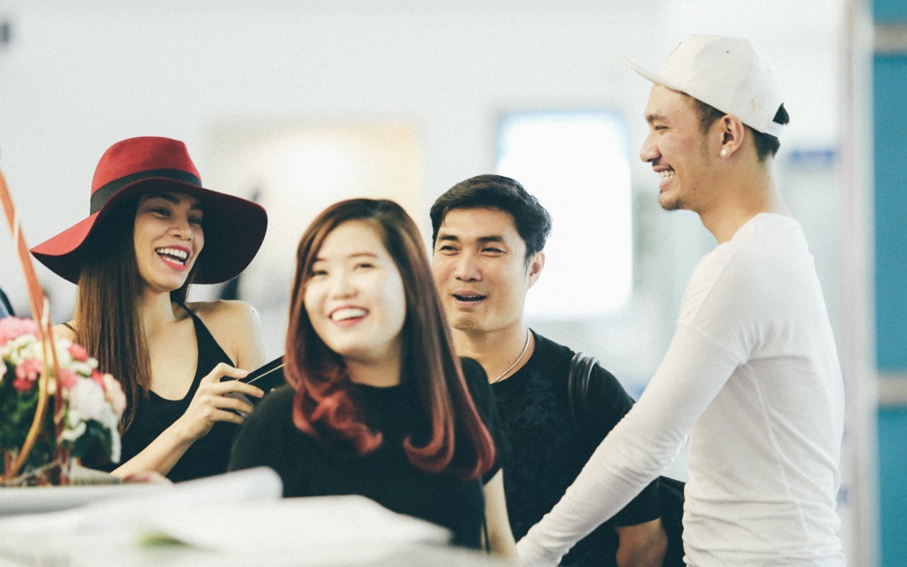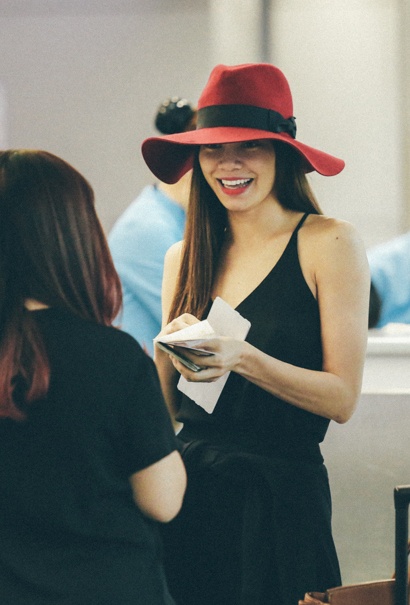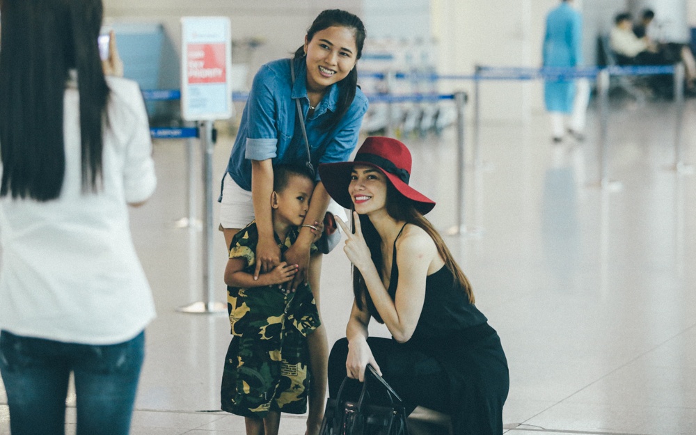 Trước giờ check-in, nữ ca sĩ trò chuyện vui vẻ cùng những người bạn. Người đẹp tỏ ra hứng thú khi dự show thời trang tại Mỹ lần này. Nữ giám khảo X Factor tiết lộ, để tham dự sự kiện, bà mẹ một con đã hủy một số show diễn ở Việt Nam.