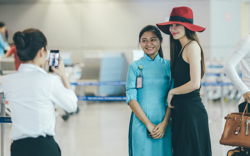 | Nữ ca sĩ sinh năm 1984 nhận được sự quan tâm của người hâm mộ. Cô dành thời gian chụp ảnh cùng một số nhân viên sân bay. |