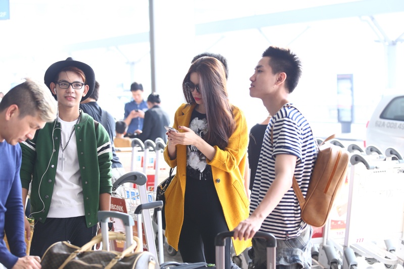 Ông xã Cường Đôla không tháp tùng nữ ca sĩ ra sân bay. Tuy nhiên, cô lại được nhóm V.Music chào đón ngay khi vừa có mặt.