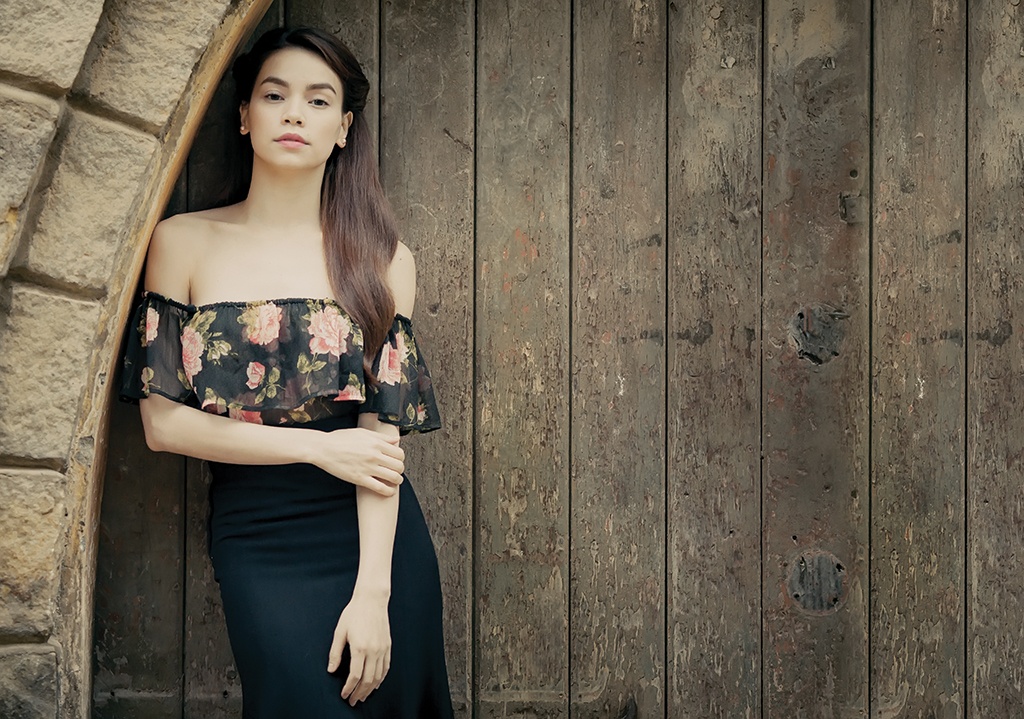 Bối cảnh thành phố ngàn hoa lãng mạn cùng phong cách trang phục nhẹ nhàng nữ tính là sự lựa chọn cho những loạt hình đậm chất cổ điển này. Tất cả đã hòa quyện và tạo nên một sự quyến rũ rất riêng cho Hồ Ngọc Hà.