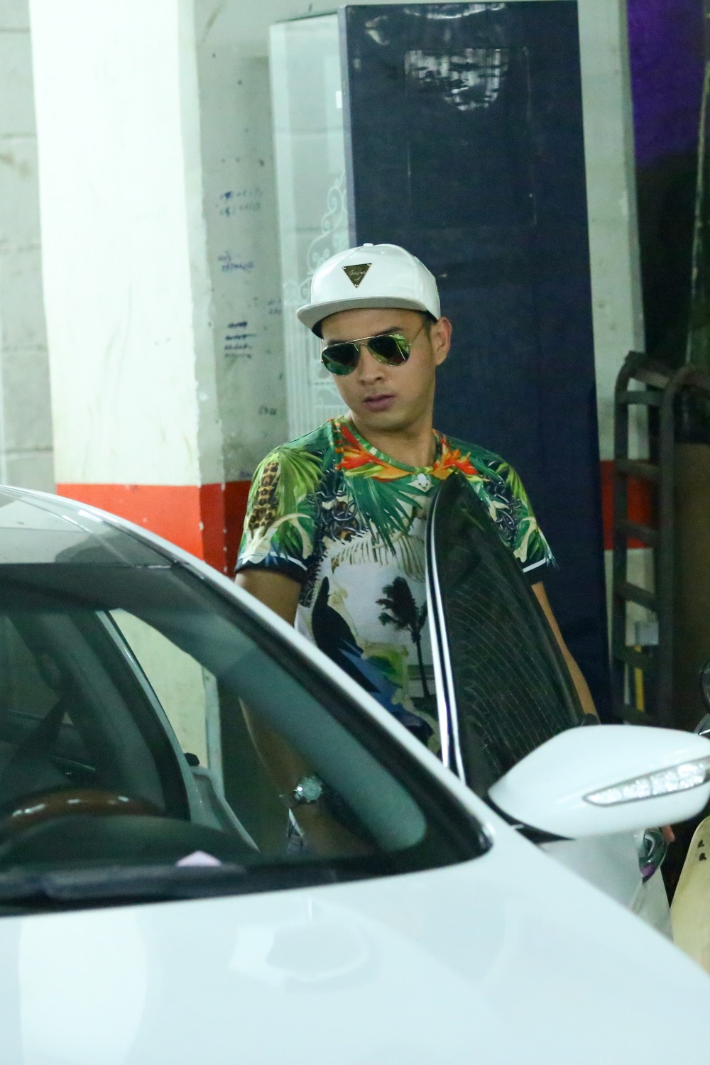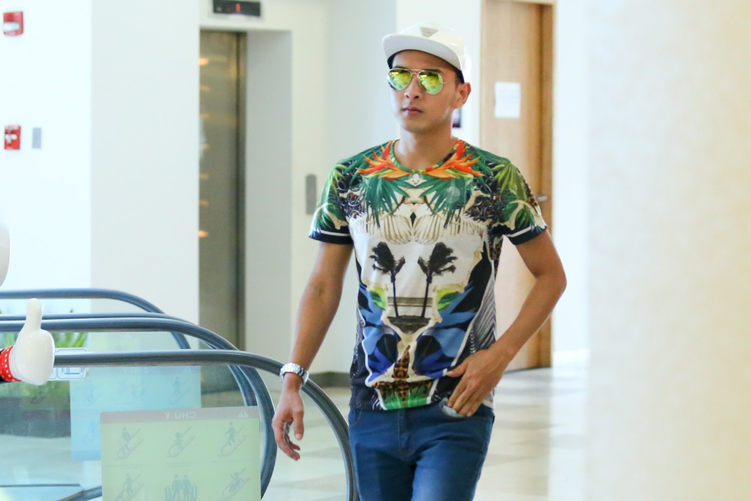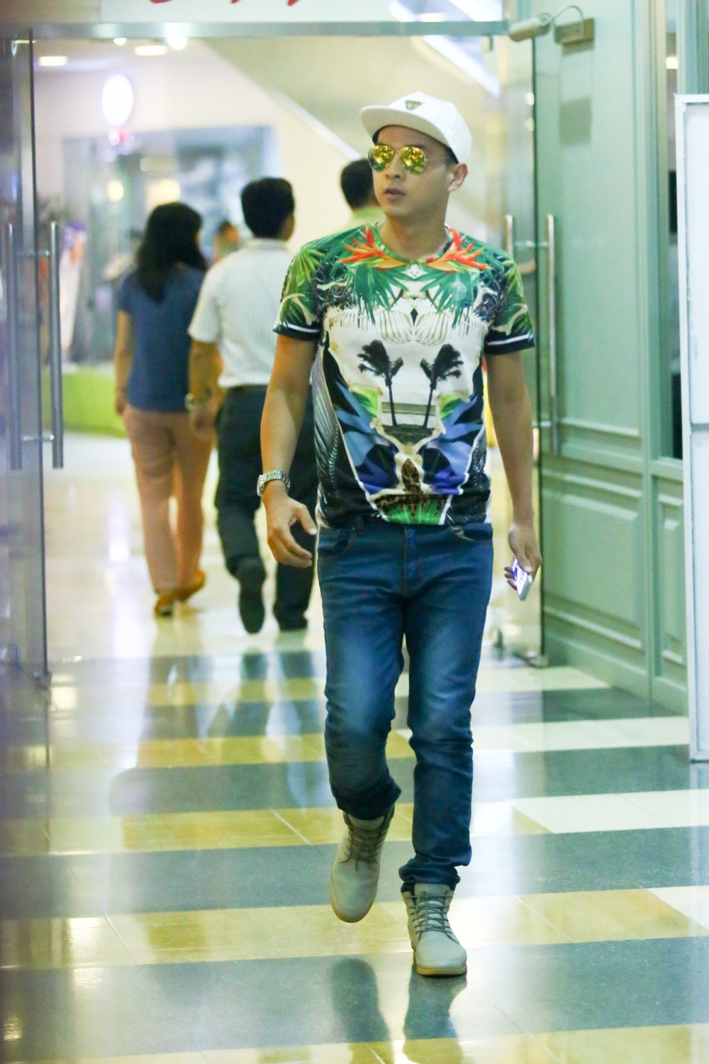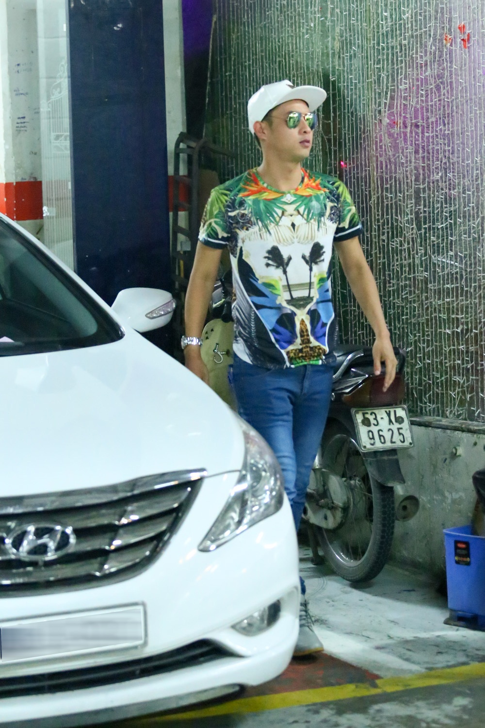 | Từ xa, giọng ca Con bướm xuân thu hút sự chú ý với chiếc áo họa tiết mùa hè tông màu bắt mắt, anh đeo kính râm và đội chiếc mũ lưỡi trai yêu thích. Do thời gian lưu diễn dày đặc và bận rộn với công việc ra mắt ca khúc mới nên trông nam ca sĩ hơi phờ phạc. |
