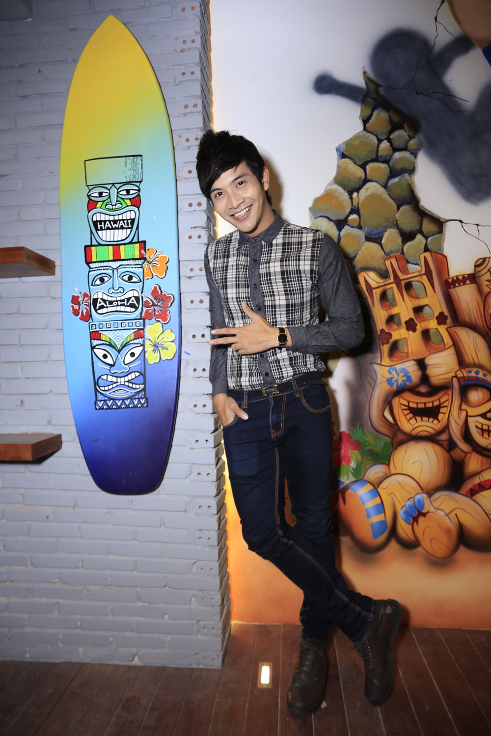 | Hôm 17/4, Hồ Quang Hiếu đã có mặt trong buổi khai trương quán cafe tại trung tâm TP.HCM. |