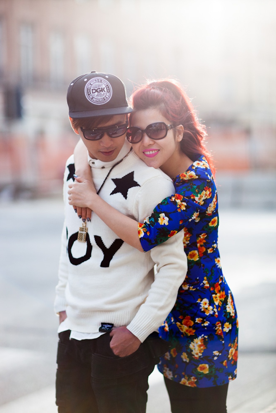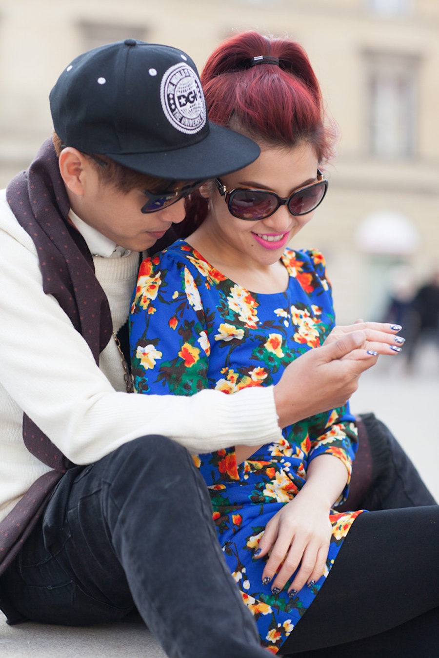 | Đôi bạn có những khoảnh khắc tình tứ trên đường phố châu Âu. |