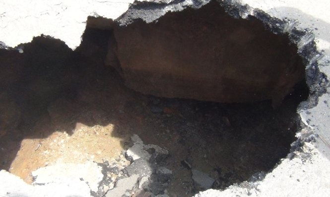 Trước đó, khoảng 16h ngày 5/3, một số người dân sống hai bên đường phát hiện mặt đường có nhiều vết nứt, nhựa bị lún xuống tạo thành một "ổ voi" rộng khoảng 50 cm. Sau đó "ổ voi" tiếp tục lan rộng ra.