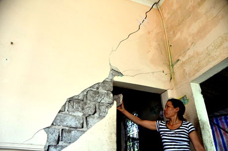 | "Hố tử thần" khiến nhiều nhà dân bị nứt. |