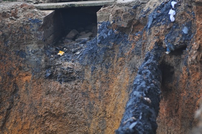 Người dân đã lấp hai lần tổng cộng 36 xe tải đát, đá khối xuống nhưng không khắc phục được. |
