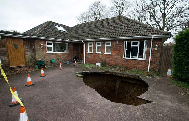 | Tuần trước, một hố tử thần sâu 9 m cũng xuất hiện trong khu nhà dân ở High Wycombe, Buckinghamshire. Ảnh: PA. |