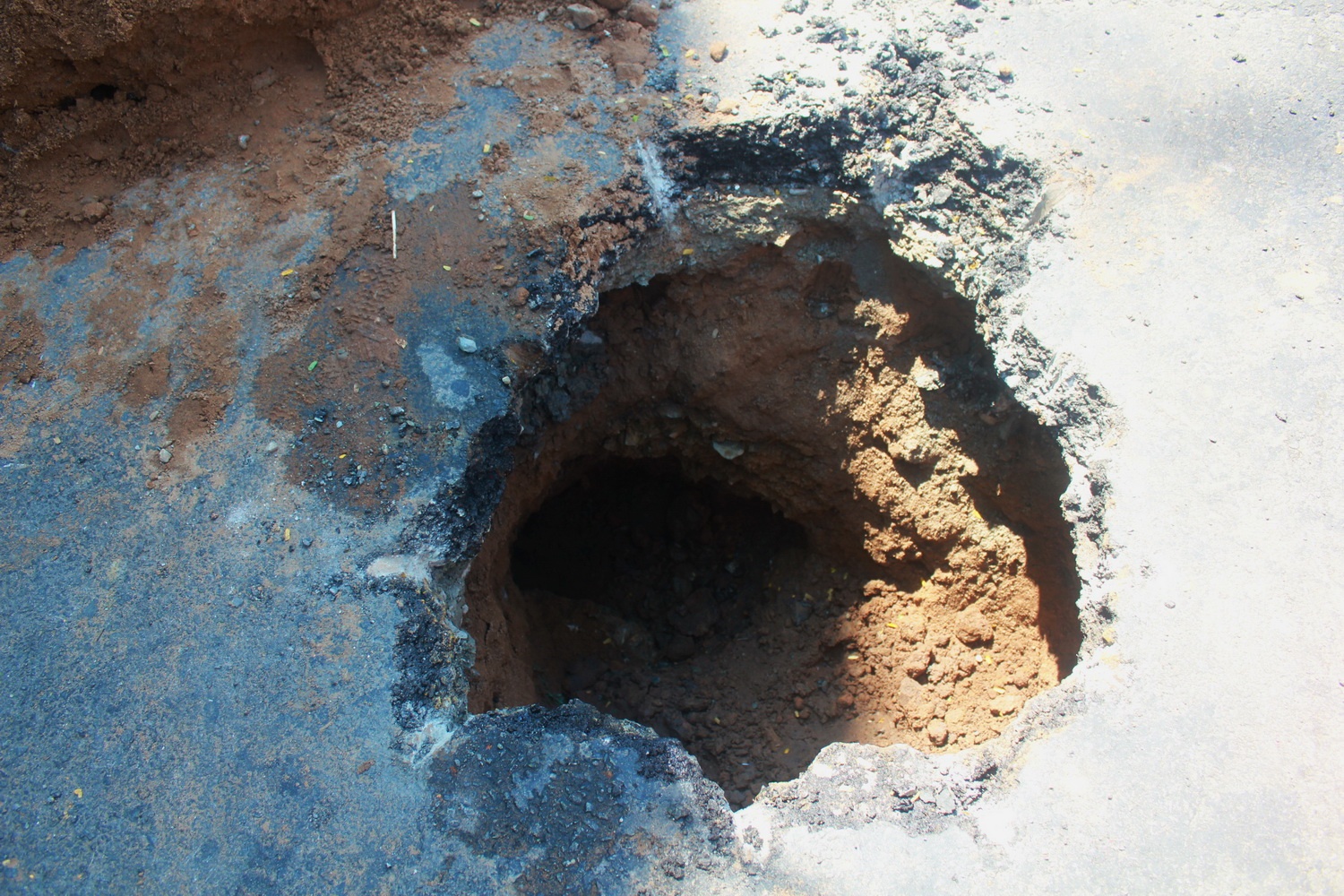 | Đến sáng 5/5, các lực lượng chức năng mới tiến hành kiểm tra "hố tử thần". Một thanh tra giao thông cho biết, nguyên nhân do thành của hố ga thoát nước bị hở, nước tràn lên và hút hết cát khiến mặt đường bị sụt xuống. |