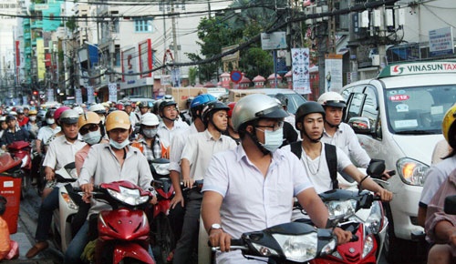 | Kẹt xe nghiêm trọng trên đường Hai Bà Trưng chiều 19/9. |