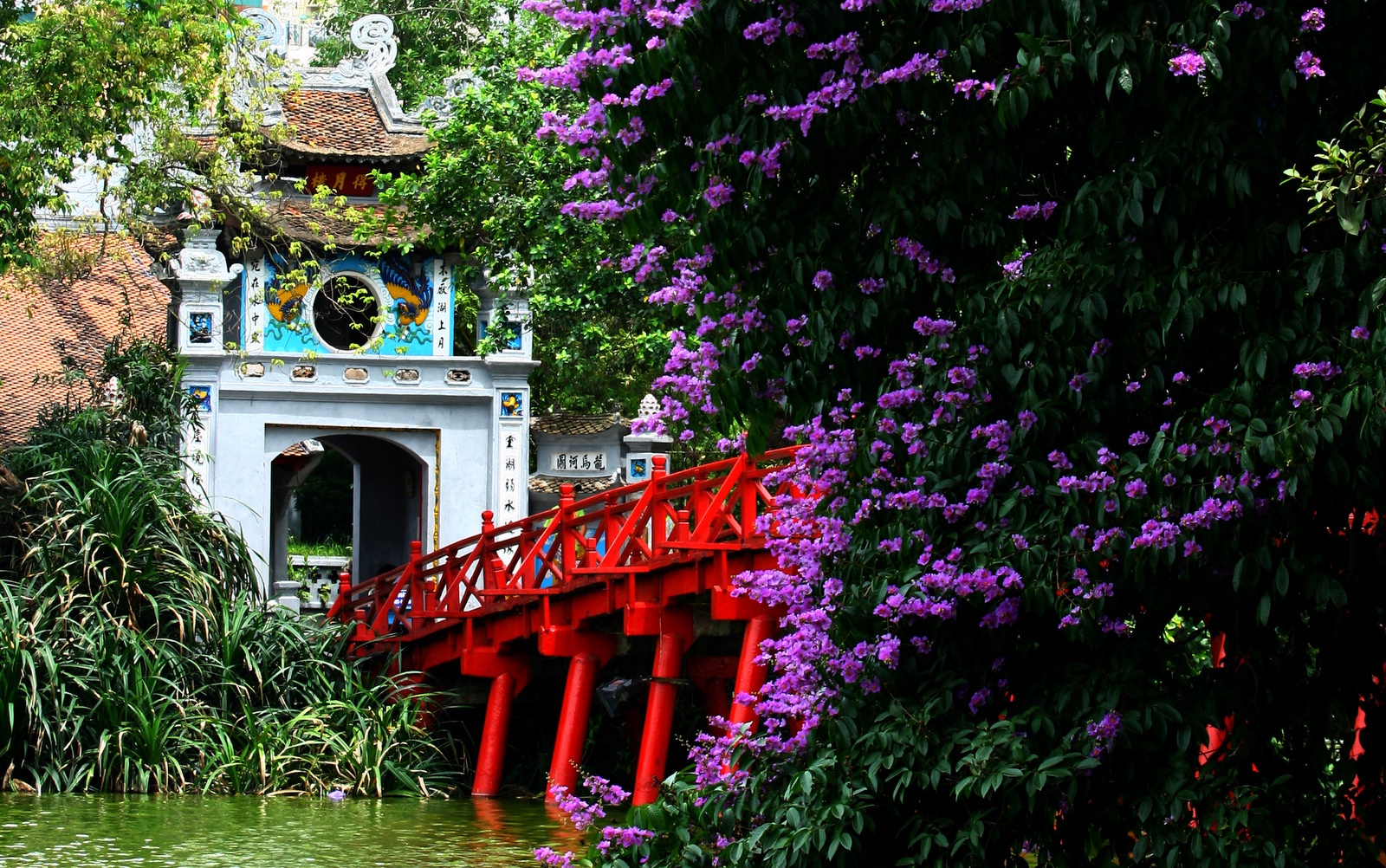 Hai bên hồ Hoàn Kiếm đoạn giữa phố Đinh Tiên Hoàng là nơi bằng lăng, phượng đỏ đua nhau khoe sắc mỗi khi hè về.