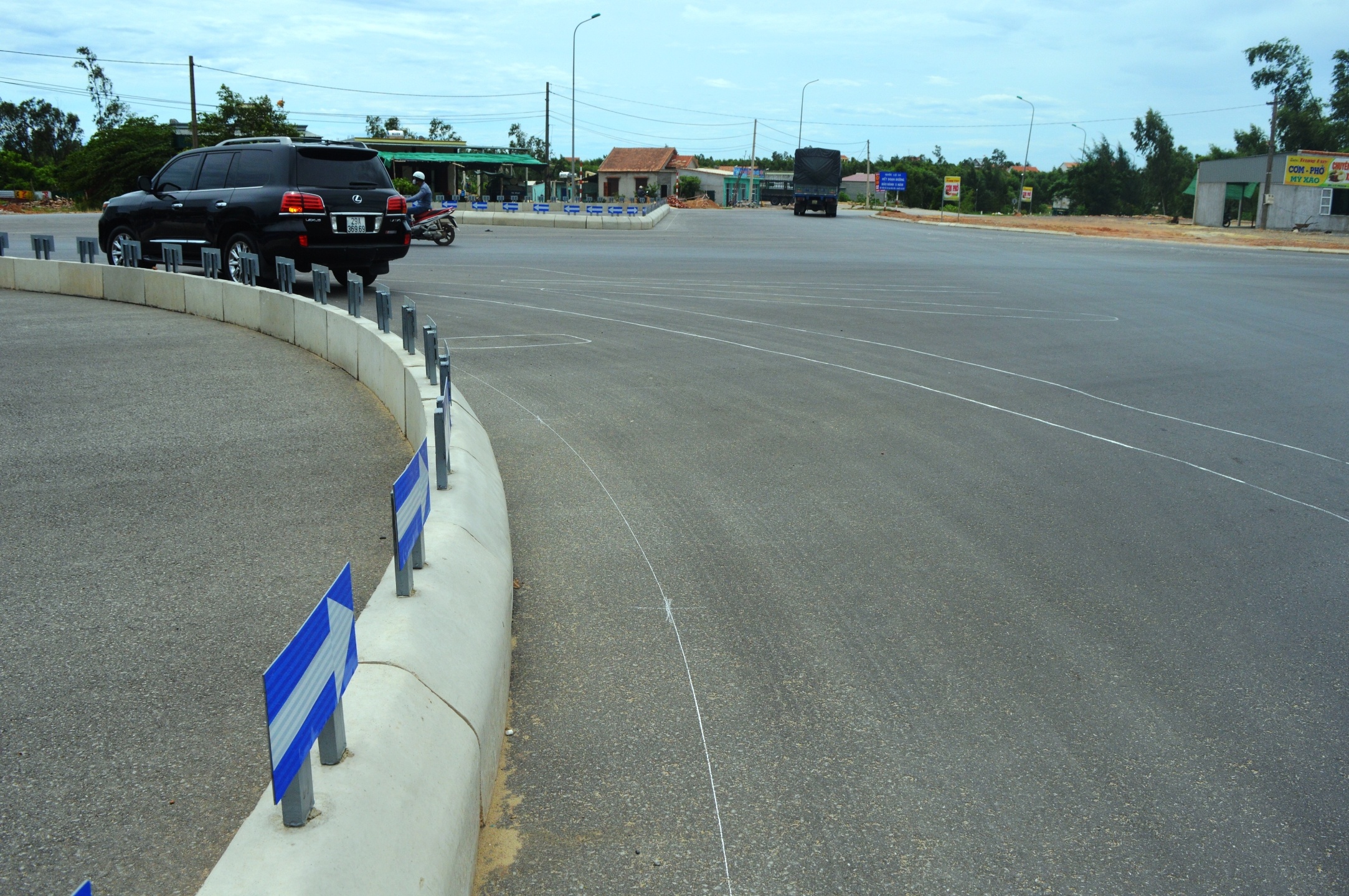 | Vòng xuyến quốc lộ 1A, nơi nhà thầu cho rằng liên tục bị phá hoại bởi hoá chất lạ. Ảnh: Văn Được. |