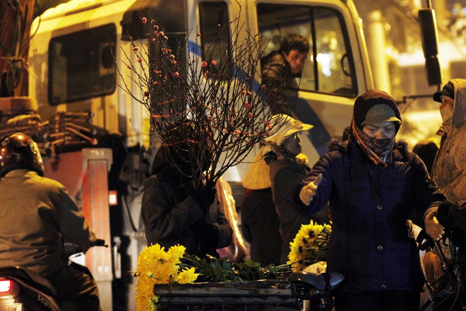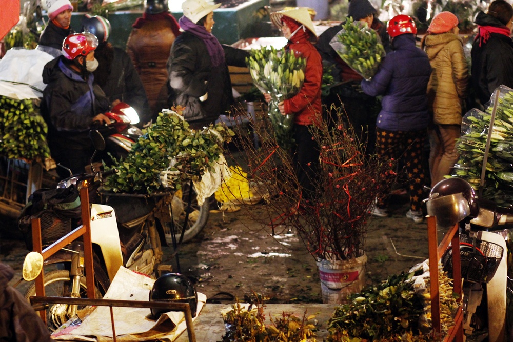 | Chợ hoa Quảng An chỉ cách làng đào Nhật Tân chưa đầy 1km. Đây là chợ hoa đêm nổi tiếng ở thủ đô. Từ 3 đến 5h sáng, người mua bán tràn ra cả lòng đường với những chiếc xe tải chở hoa từ các tỉnh xa về. |
