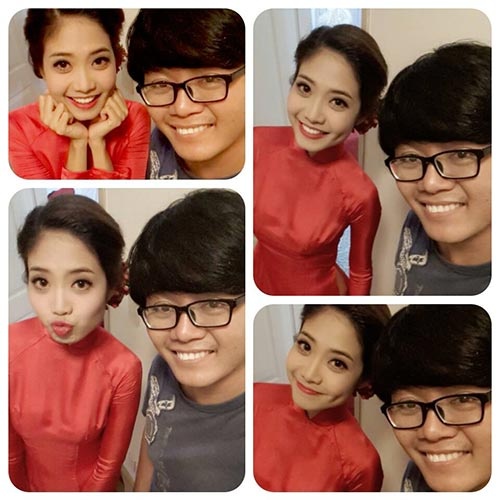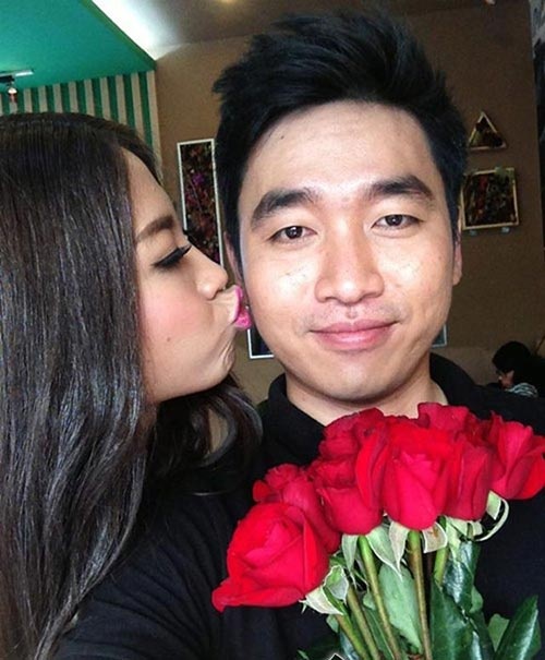 | Ninh Hoàng Ngân tình cảm bên cạnh ông xã. |