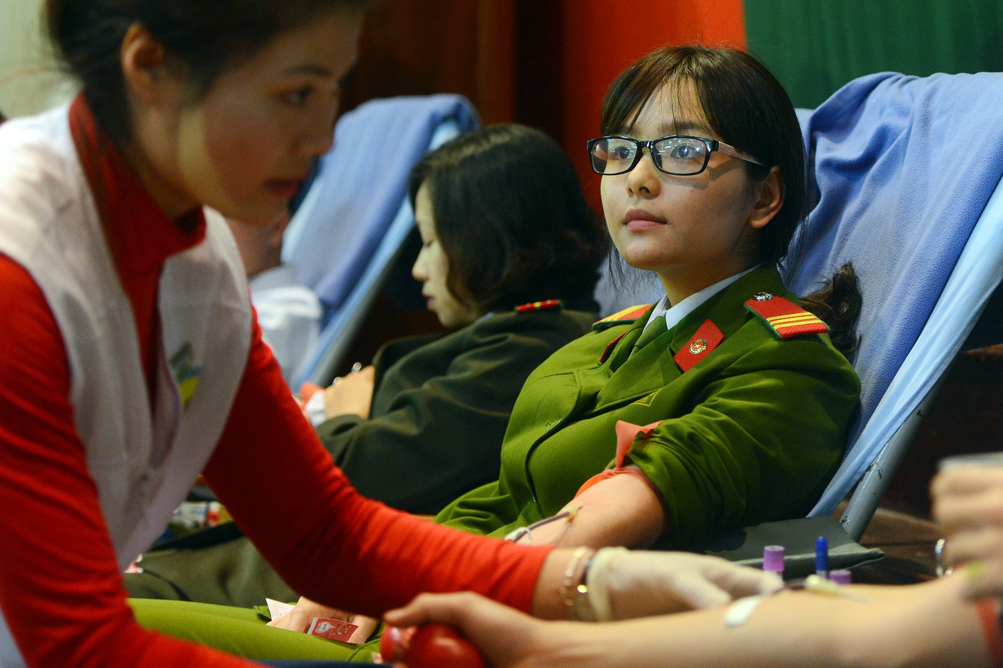 Thượng sĩ Nguyễn Ngọc Quỳnh (22 tuổi, công an quận Hoàng Mai) lần thứ hai tham gia hiến máu. Tại đơn vị của Quỳnh, ngoài cô còn có hàng chục chiến sĩ trẻ khác cũng có mặt hiến máu, không ít trong số đó là nữ.