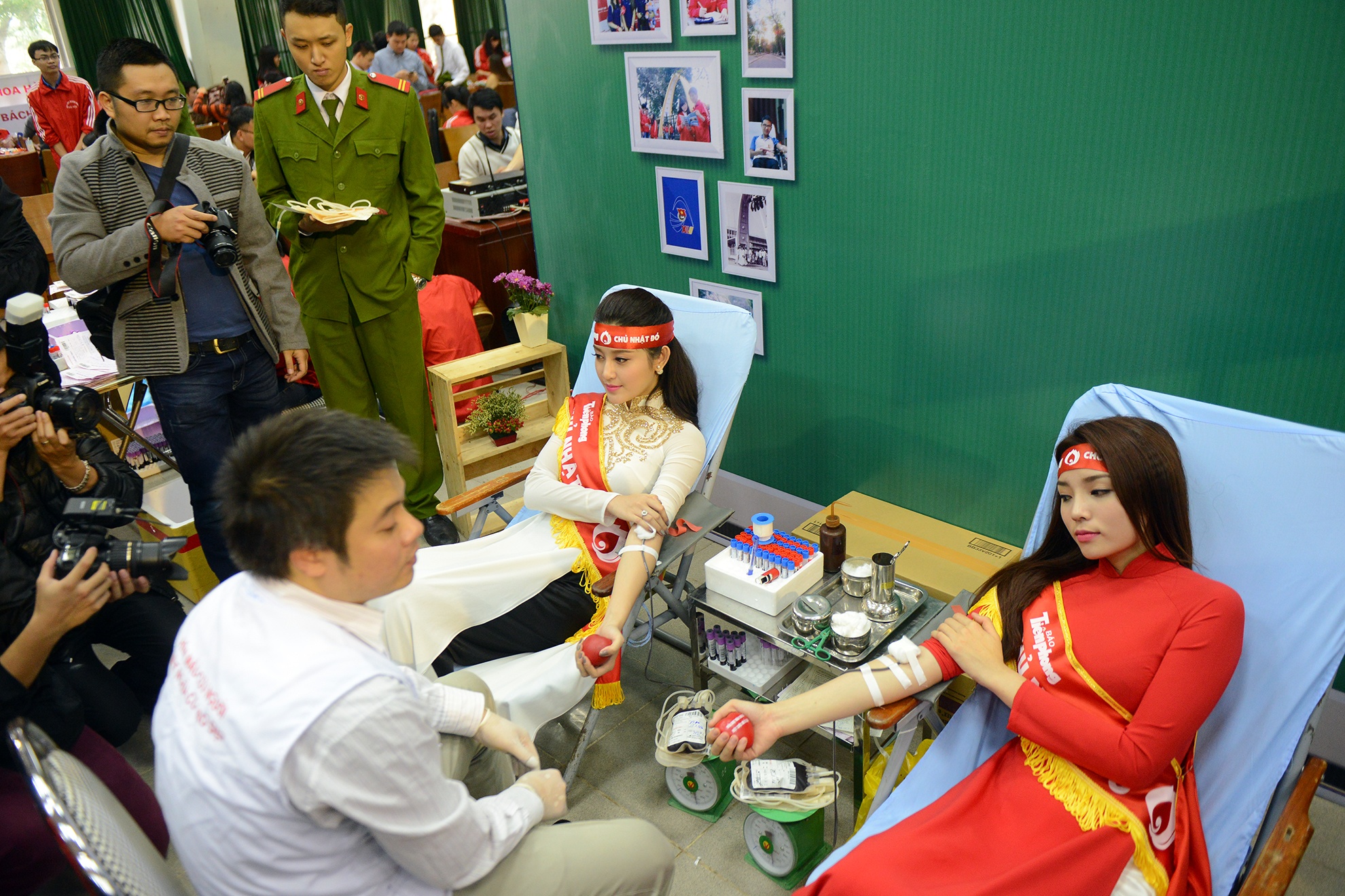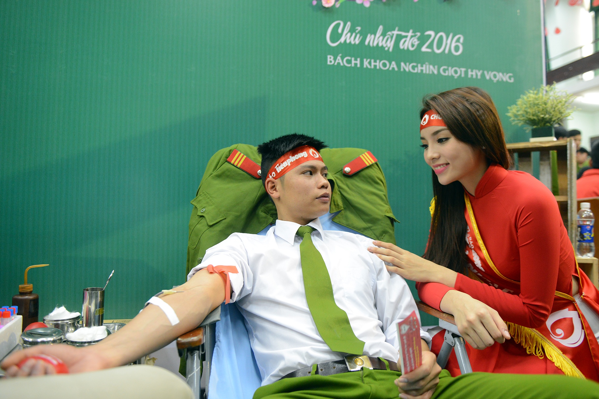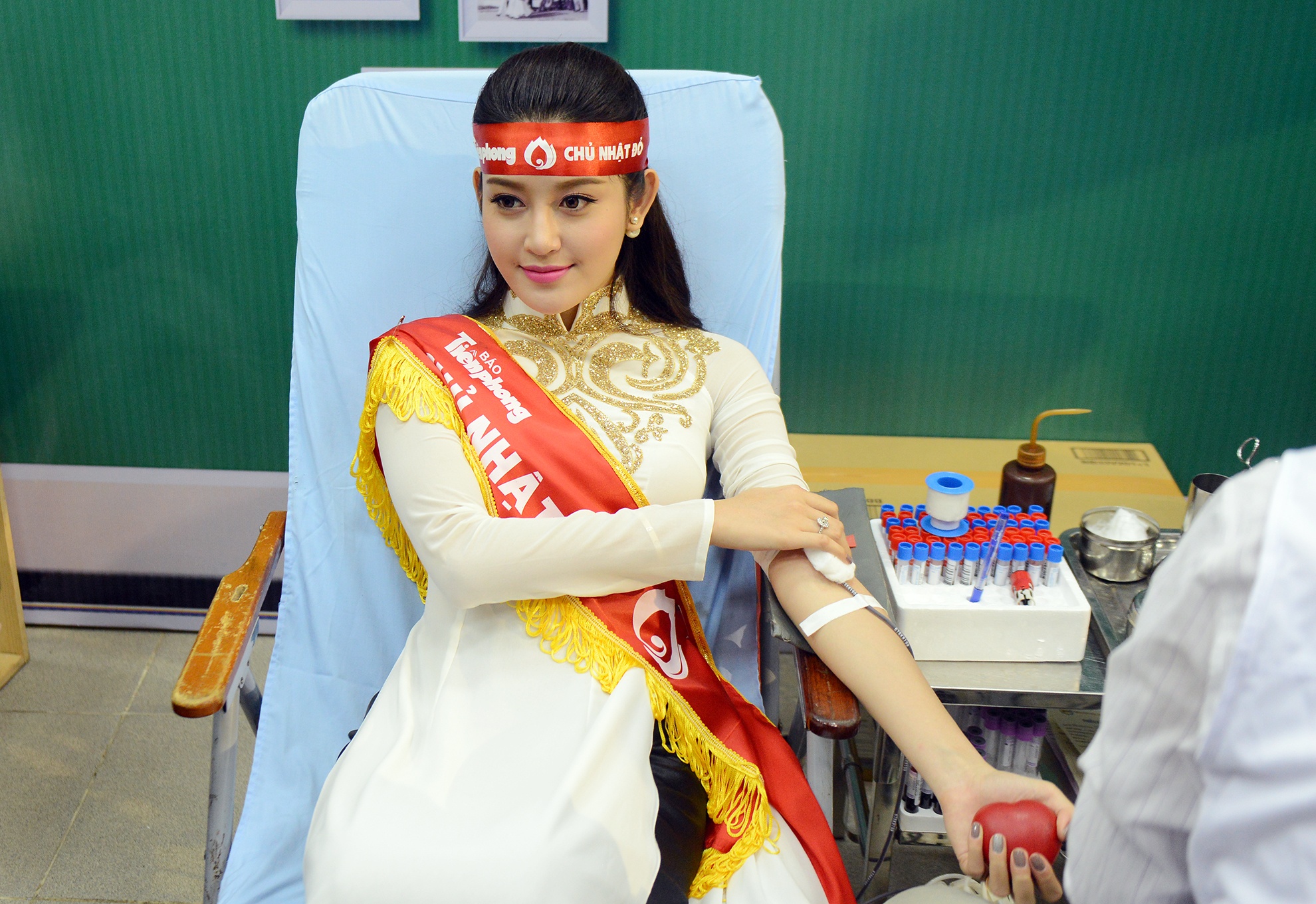 Huyền My cũng góp mặt. Đây là lần thứ hai người đẹp song hành cùng Kỳ Duyên đi hiến máu. Á hậu Việt Nam 2014 chia sẻ, cô hy vọng mỗi giọt máu quý giá dù là của bất cứ ai cũng sẽ đến được những bệnh nhân đang cần để vượt qua đau đớn và bạo bệnh.