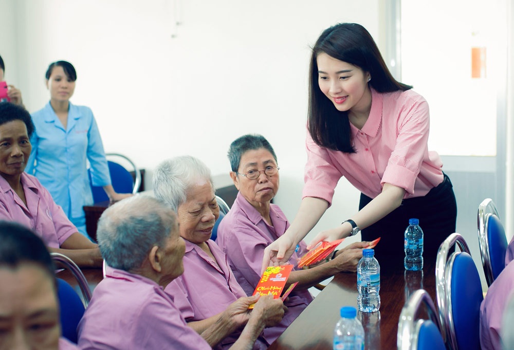 | Sáng 27/1, Hoa hậu Việt Nam 2012 cùng ca sĩ Đức Tuấn đến thăm và tặng quà Tết cho 600 người cao tuổi có hoàn cảnh khó khăn, cùng hội nạn nhân chất độc dioxin tại Vĩnh Long, Bến Tre và TP HCM với tư cách Đại sứ đầu tiên của Quỹ chăm sóc người cao tuổi thuộc Trung ương hội người cao tuổi Việt Nam. |