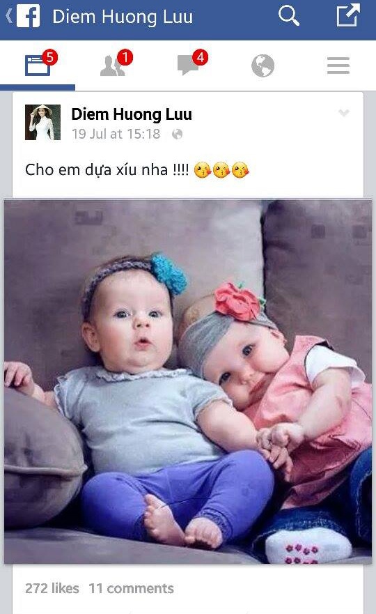 Người đẹp sinh năm 1990 cũng khiến nhiều người tò mò và đặt ra nghi vấn khi thường xuyên đăng tải những bức hình trẻ em dễ thương trên trang cá nhân. Bên cạnh đó, cô dành sự quan tâm tới chuyện sinh nở: "Nghe nói Việt Nam mình đang khuyến khích sinh. Có phải vì vậy mà đâu đâu cũng thấy đăng hình em bé mới sinh đỏ hỏn (so cute), rồi hôm qua giờ cứ thấy các bạn nữ đăng hình hai vạch, các bạn nam thì đăng hình tự sướng kể vợ sắp sinh. Gì chứ vụ này, người Việt Nam hưởng ứng mạnh mẽ và thực hiện nghiêm túc nhỉ?".