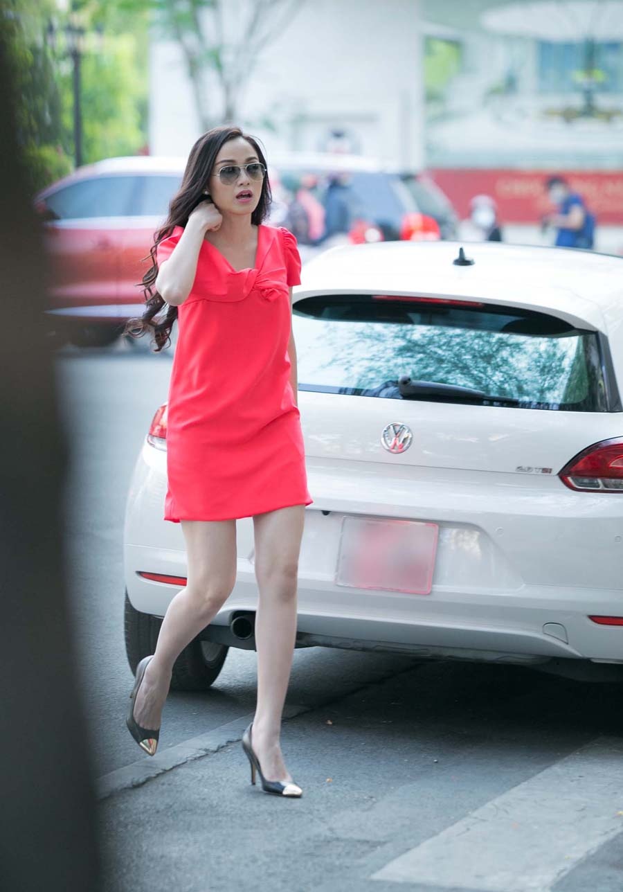 Diễm Hương gặp gỡ bạn trong khoảng hơn 1 tiếng. Sau đó, cô cùng trợ lý bận rộn cho những công việc kế tiếp.