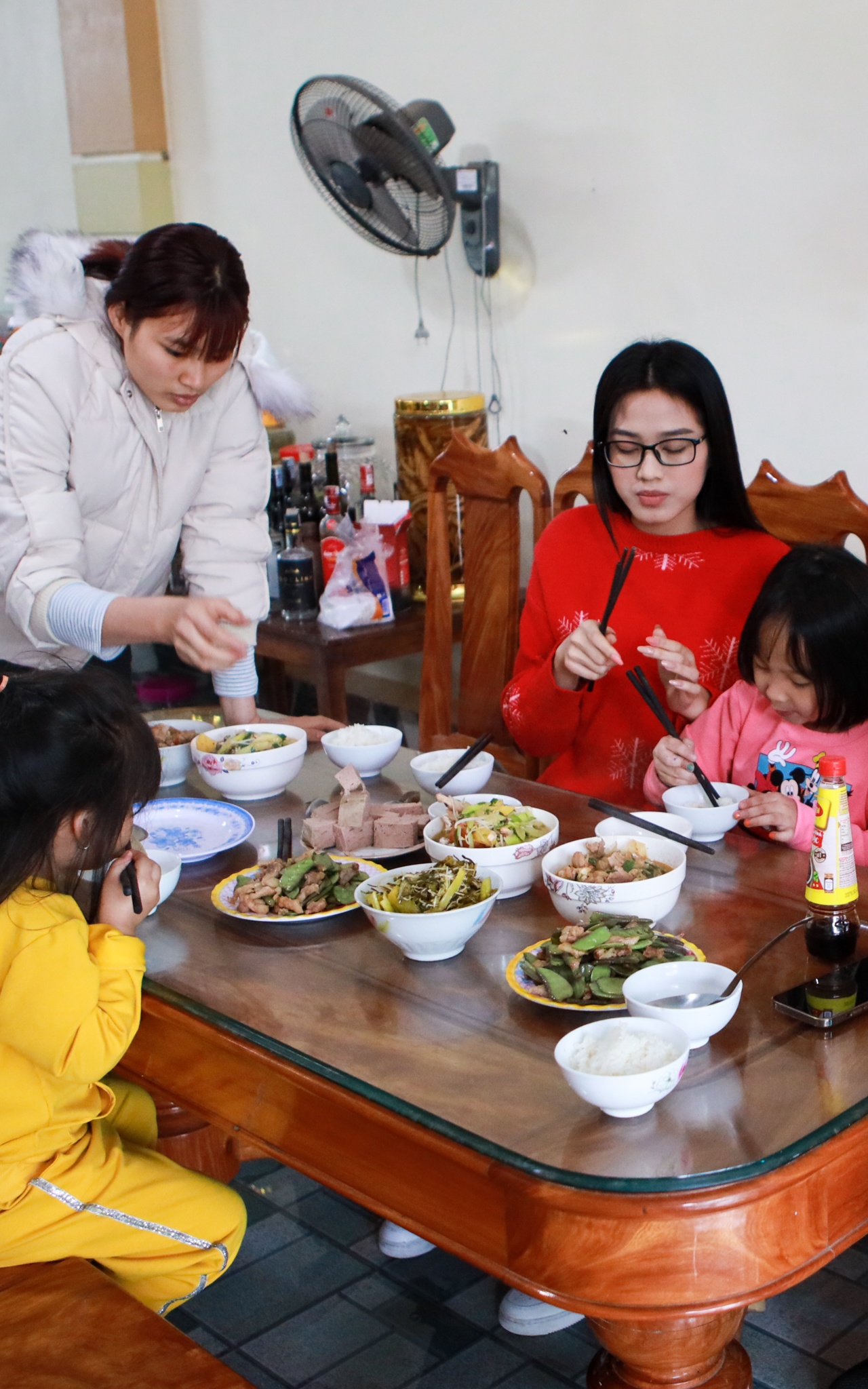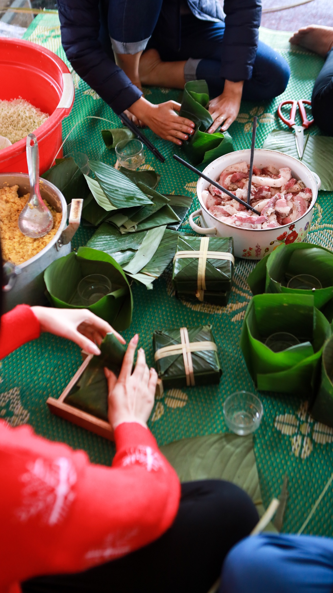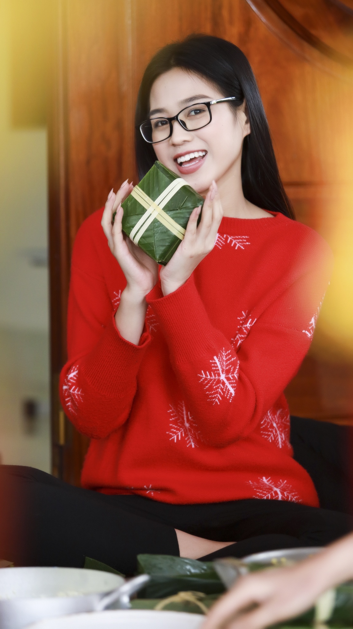 | Biết cháu gái về quê đón Tết, họ hàng người thân tập trung tại nhà tôi để gói bánh chưng. Đây cũng là hoạt động tôi chờ đợi nhất mỗi dịp Tết đến xuân về. |