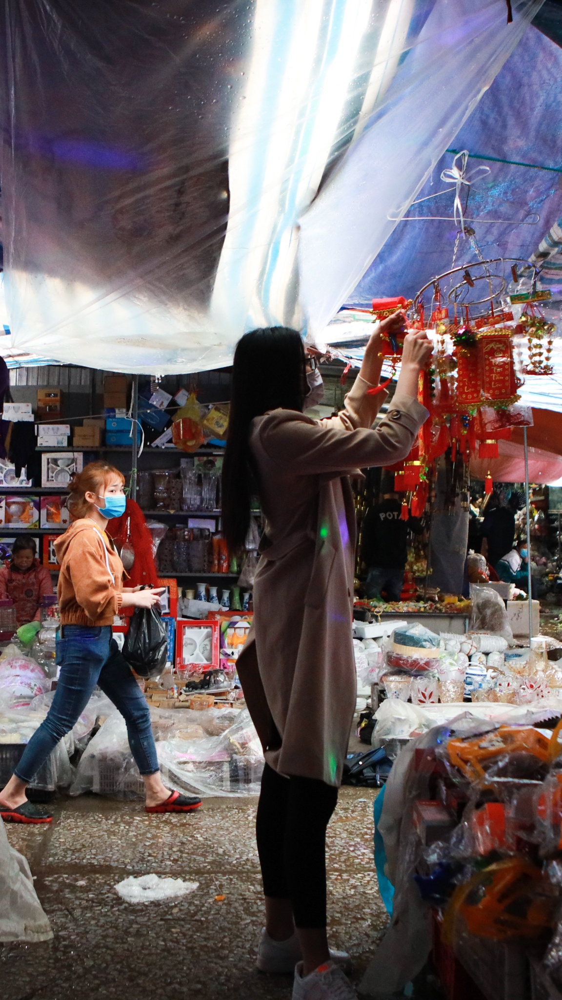 | Gian hàng nhỏ trong chợ khiến tôi thấy thân thuộc. Chợ Tết ở quê luôn có sức hấp dẫn kỳ lạ. Mỗi lần đi chợ tôi đều nhớ lại cảm giác lúc bé, hồi hộp, vui sướng khi được mẹ mua áo mới mỗi độ xuân về. |