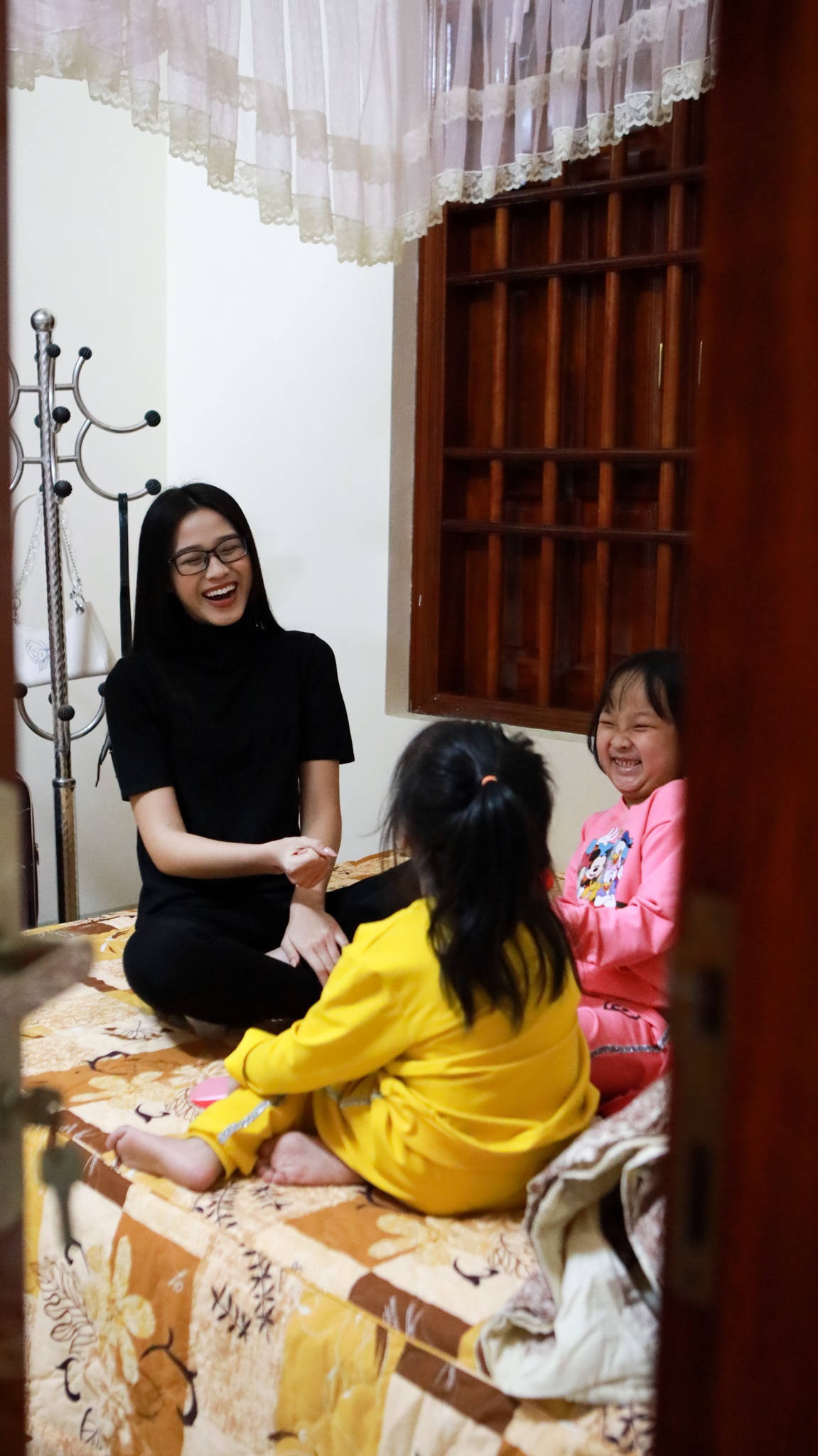 | Căn nhà nhỏ luôn tràn ngập tiếng cười mỗi khi tôi về. "Lớn lên cháu muốn làm hoa hậu giống cô Hà", những đứa cháu tíu tít cười đùa khi chơi với tôi. |