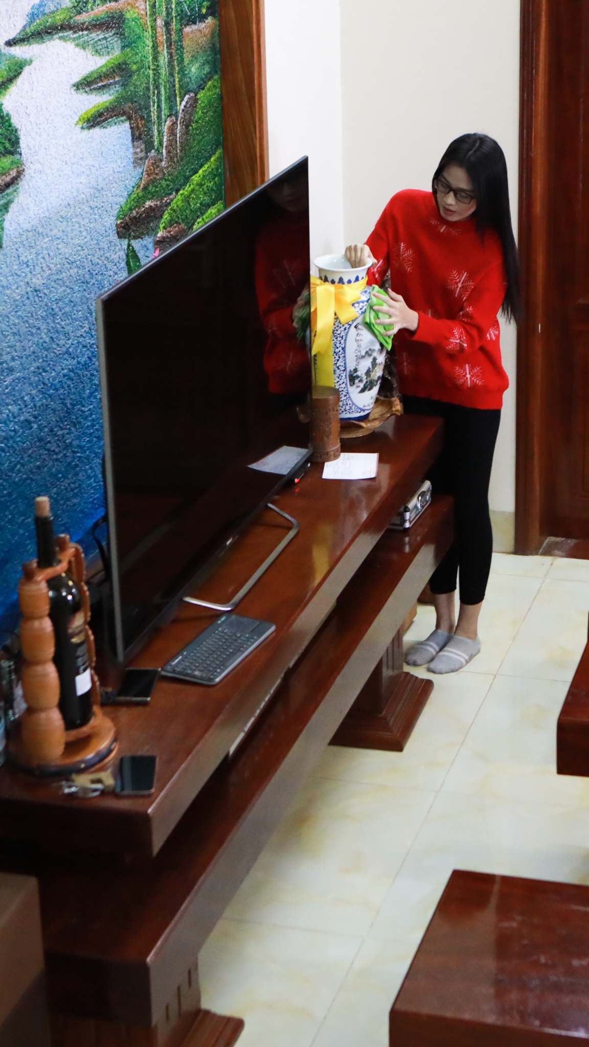 | Năm nay, dù về quê ăn Tết muộn hơn những tôi vẫn dành một ngày để sắm sửa, dọn dẹp nhà cửa. Nhà nhiều đồ gỗ, tôi tỉ mỉ lau từng chút một. |
