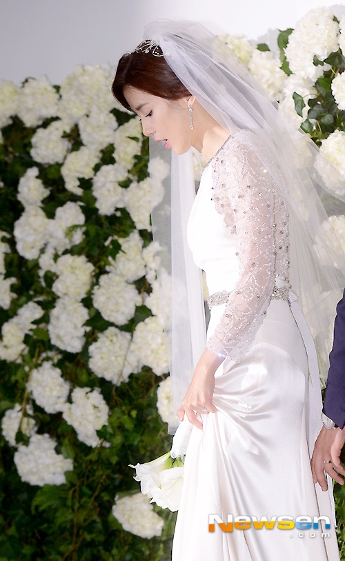 Hoa hậu Hàn Quốc quyến rũ với bộ váy cưới trắng tinh.