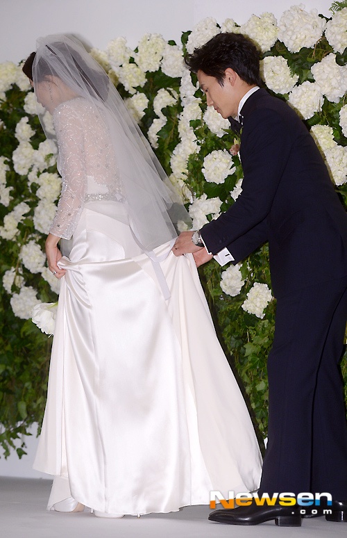 | Chiều nay, ngay trước lễ cưới, Lee Bo Young và Ji Sung đã dành cho báo chí một ít phút để chụp hình và gửi lời cảm ơn tới người hâm mộ. |