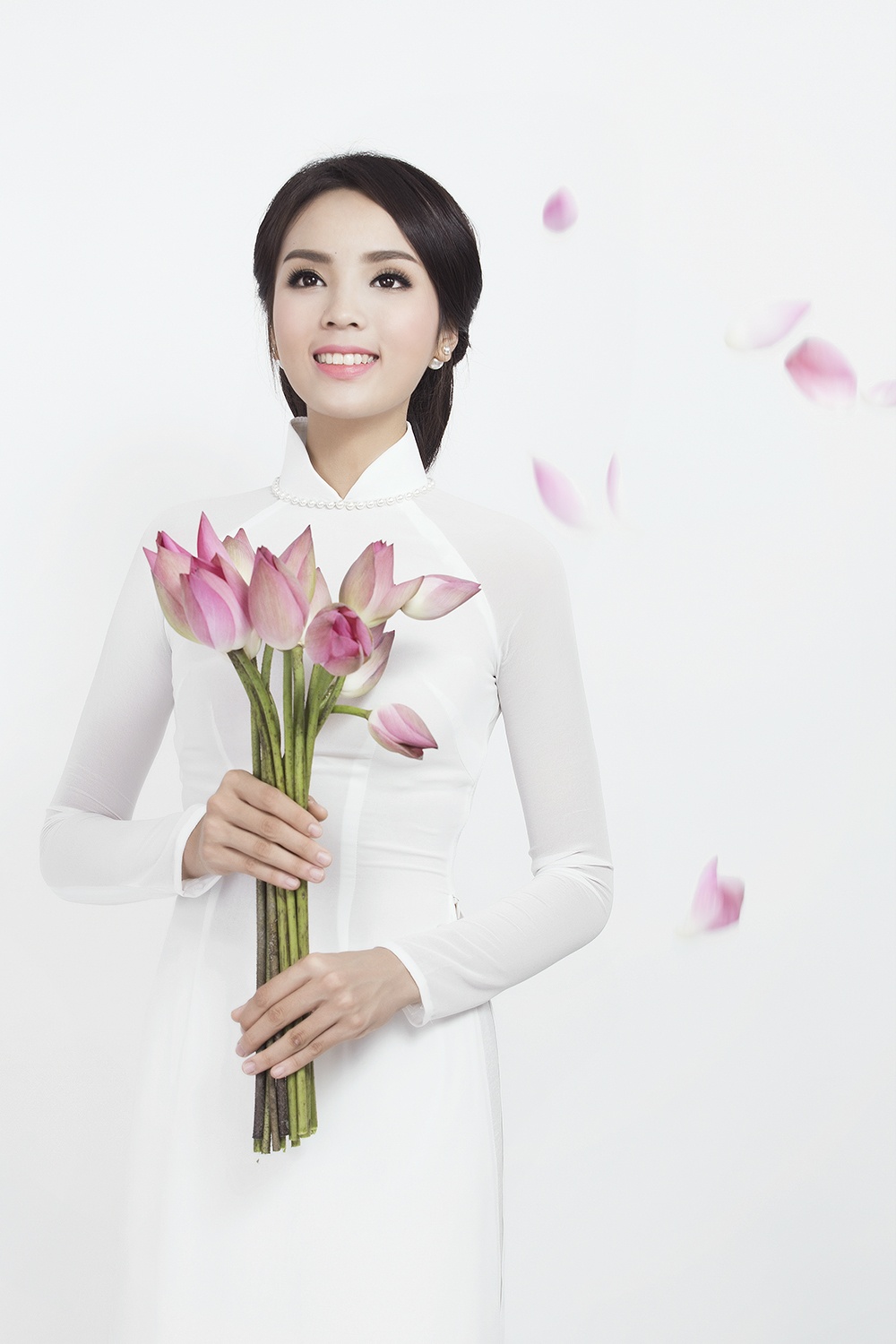 | Ở thiết kế khác, người đẹp chọn kiểu áo dài tông màu trắng trong trẻo, là gam màu mà cô rất yêu thích để thể hiện phong cách dịu dàng, đậm hồn Việt. |