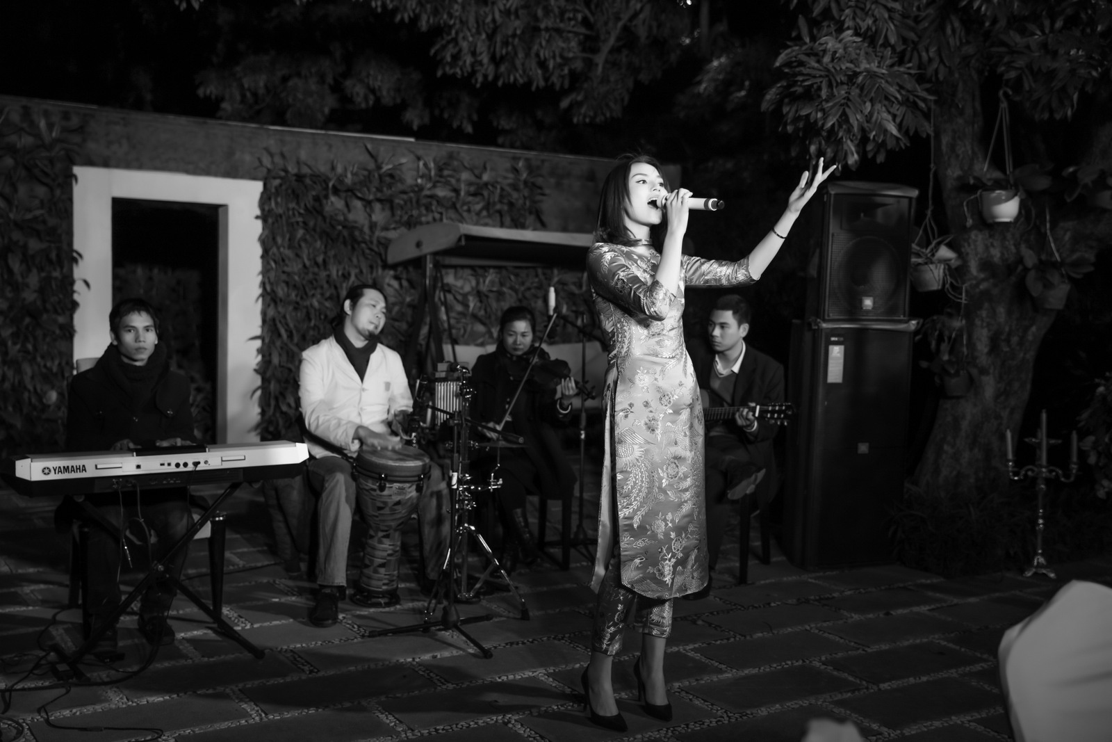 Nhan sắc gốc Nam Định còn ngẫu hứng hát ca khúc Cám ơn tình yêu để tặng các vị khách. Vì không có sự chuẩn bị trước nên đôi chỗ, Kỳ Duyên hát sai lời. Tuy nhiên, hoa hậu vẫn đem lại không khí đầm ấm cho buổi tiệc với giọng hát nhẹ nhàng, tình cảm. |