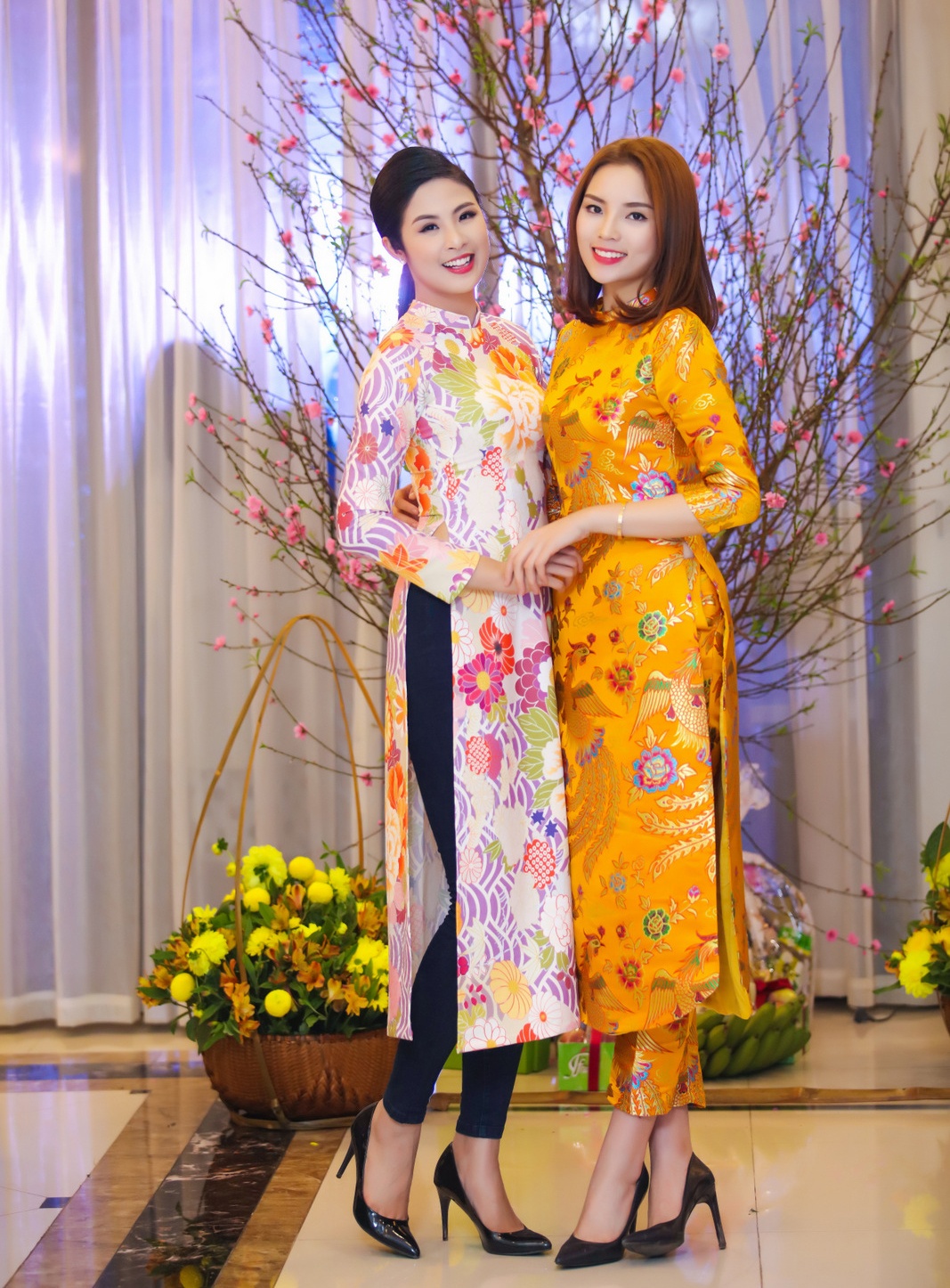 Tối 4/2, 2 hoa hậu Việt Nam là Kỳ Duyên và Ngọc Hân cùng á hậu Tú Anh tham dự một buổi tiệc cuối năm tại Tây Hồ, Hà Nội. Không hẹn mà gặp, cả hai đều chọn áo dài cách tân cho sự kiện.