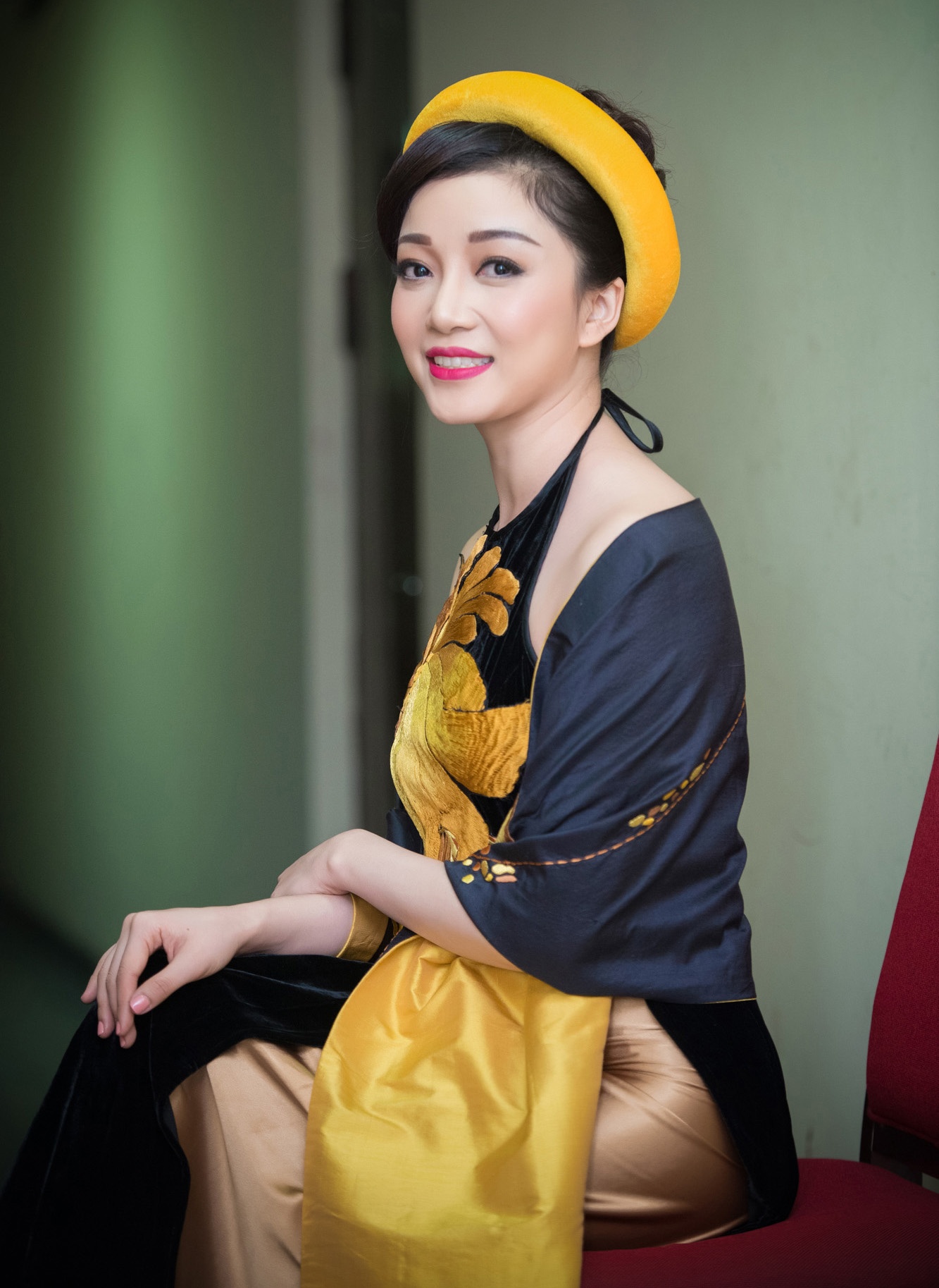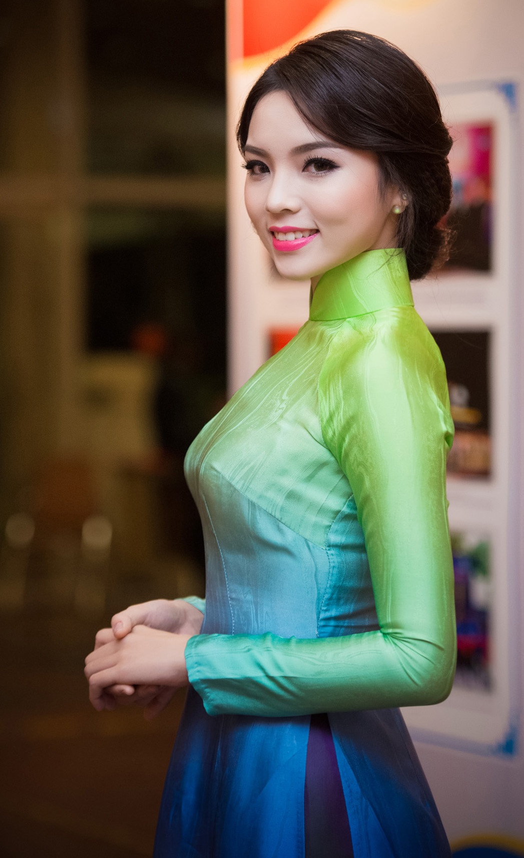| Trong chương trình, Kỳ Duyên khoe vẻ duyên dáng trong chiếc áo dài đặc biệt in hình vịnh Hạ Long. |