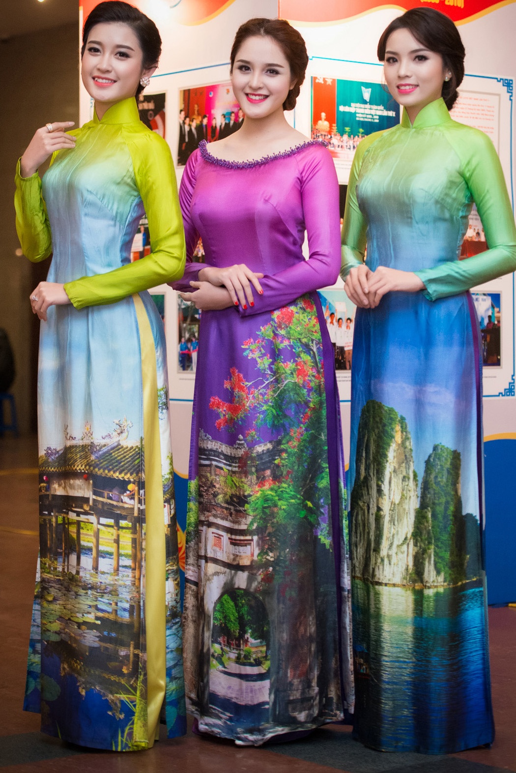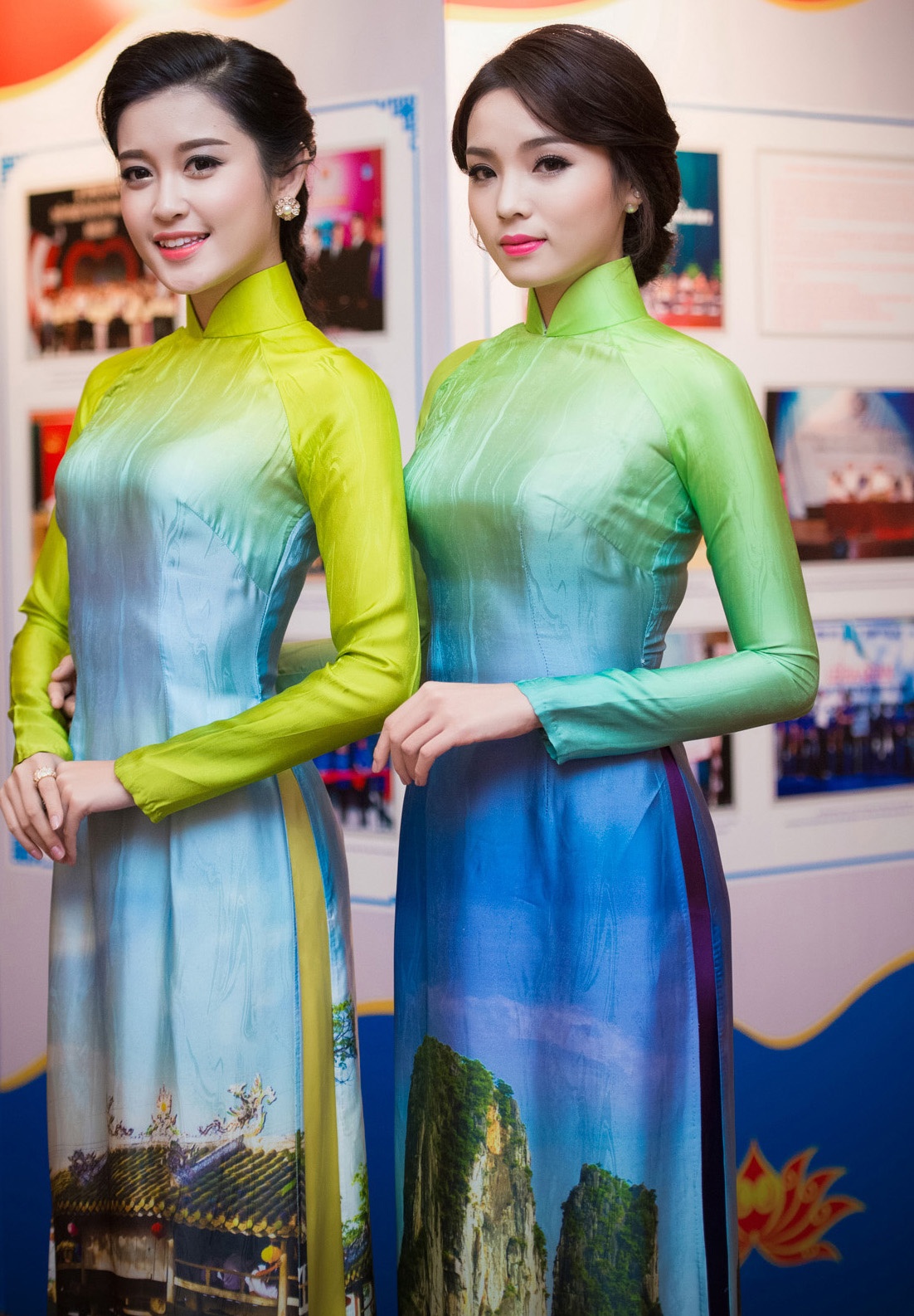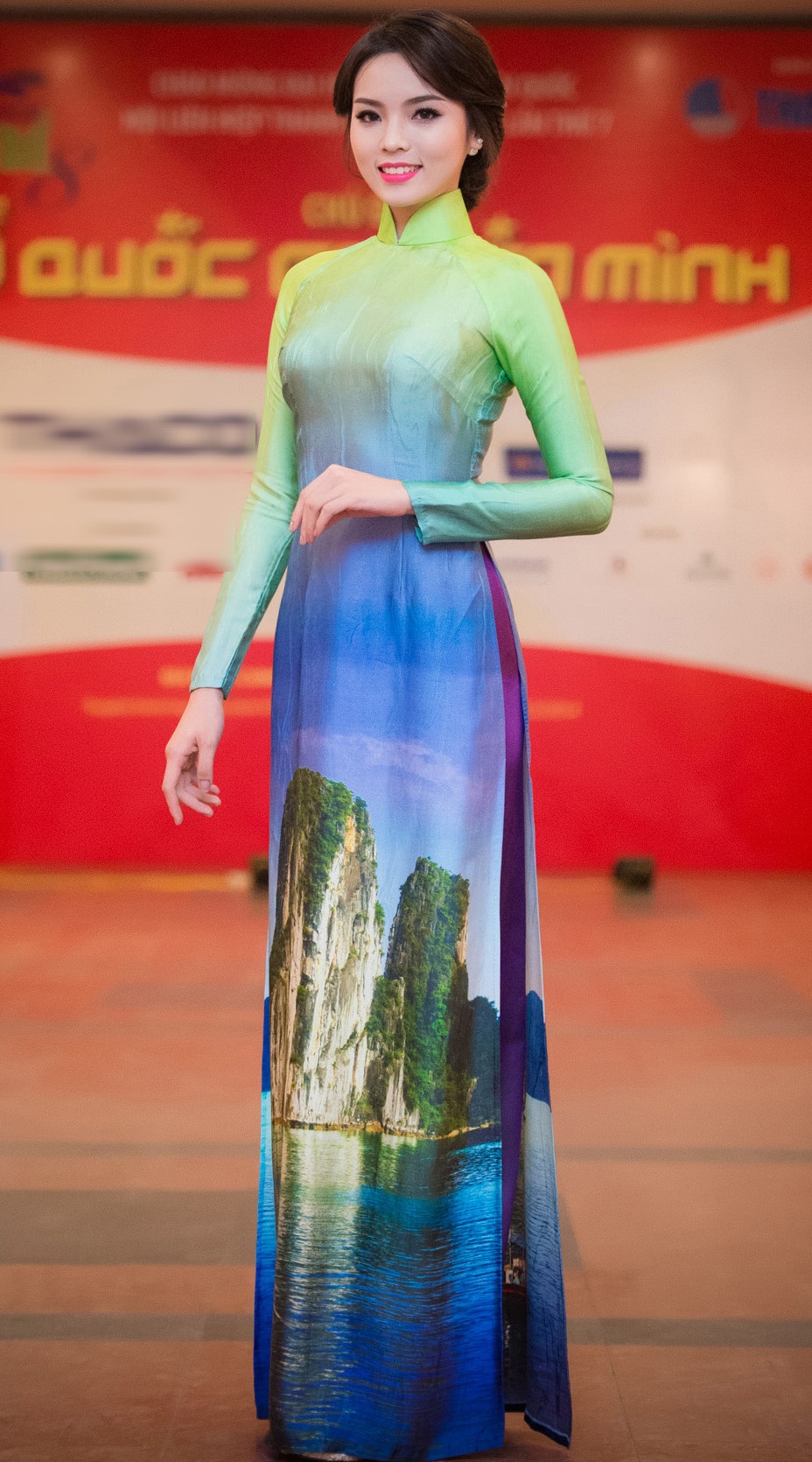 Hoa hậu Kỳ Duyên nổi bật với áo dài in hình vịnh Hạ Long