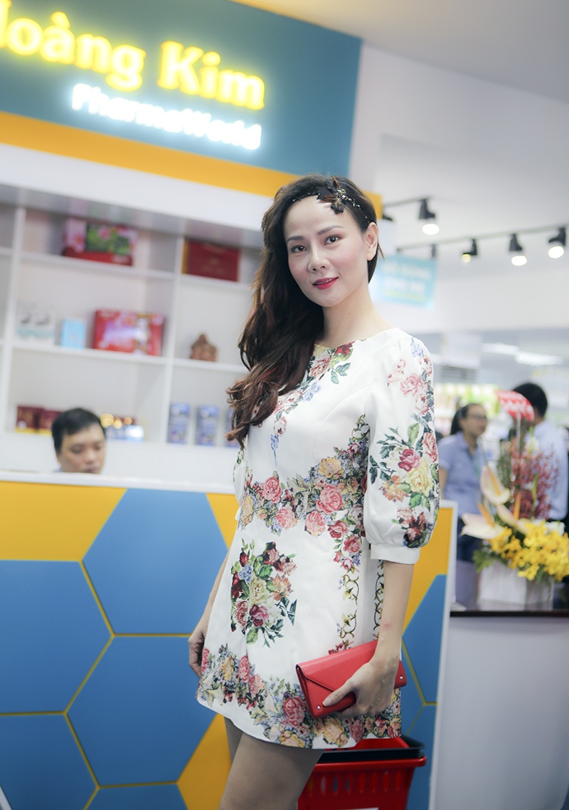 | Tú Vi nổi bật với nụ cười rạng rỡ tại siêu thị dược phẩm Hoàng Kim. |