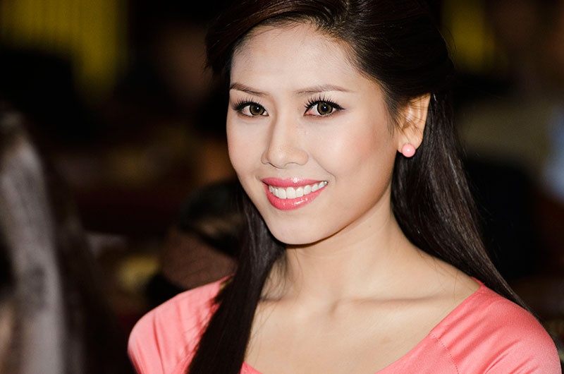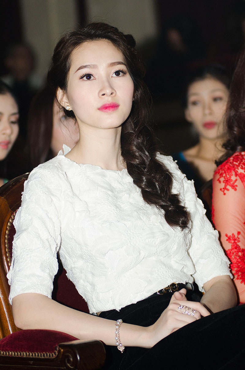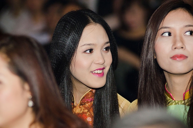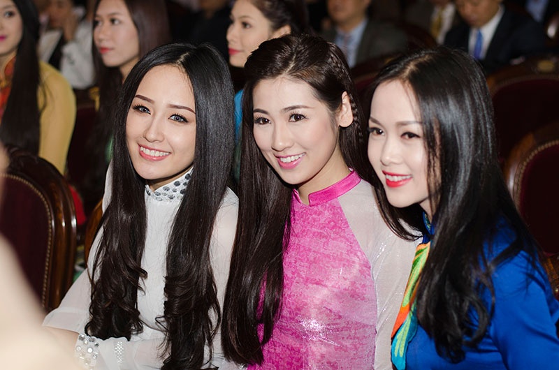 | Á hậu của cuộc thi Hoa hậu Việt Nam 2012 - Dương Tú Anh - dịu dàng, e ấp trong tà áo dài màu hồng sen đơn giản. Cô hiện đang là sinh viên của Học viện Báo chí. |